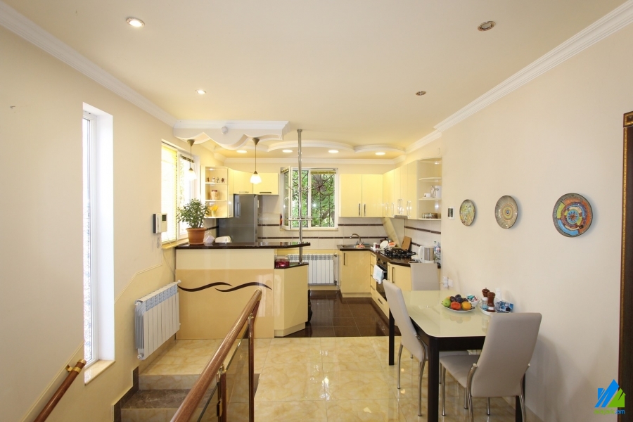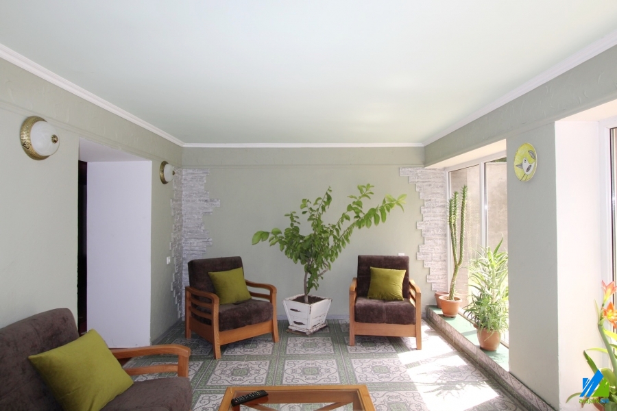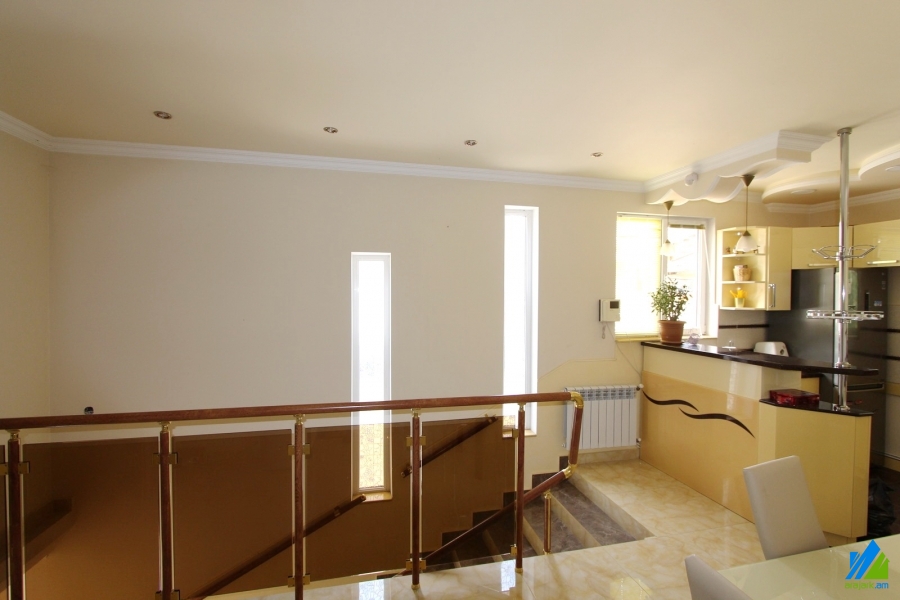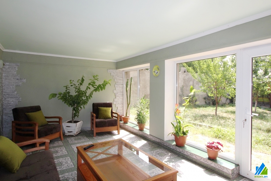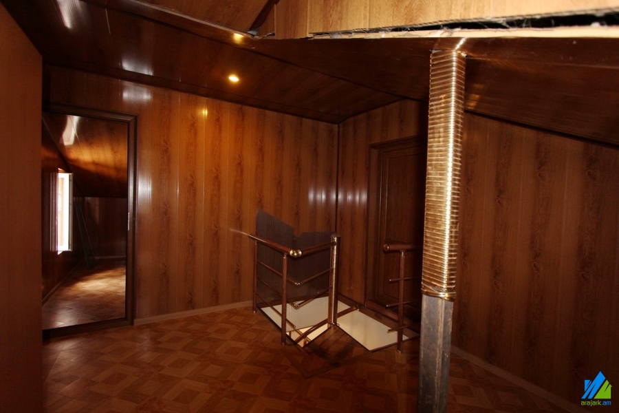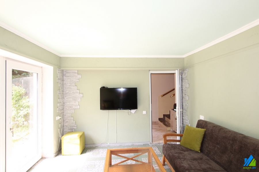 2-storey house for sale in Dzoraghbyur. The rooms' quantity is 4 (a hall and 3 bedrooms). The house is newly renovated. The entrance door is iron-made, the windows are euro-based, the floor is covered by laminate and is tiled. The bathrooms (2) are combined and tiled. The electric wires and pipes are newly changed. The house has 2 balconies, attic, garden with fruitful trees, pavilion, built-in closets, heating system and is supplied with water and gas. The house is being sold along with partial furniture and electronic devices.