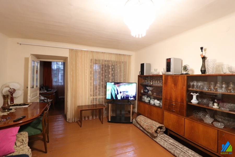 A commercial area for sale on Buzand Street. The rooms' quantity is 3. The area is in the state condition and is located on the semi-basement floor of the 4-storey stone building, which is stationed on the 1st line. The entrance door and windows are wooden. The area has parking, showcases (3), tiled bathroom and is supplied with constant water and gas. The entrance is from the yard. There is an opportunity to open an entrance from the street. The front lenght is 10 m.