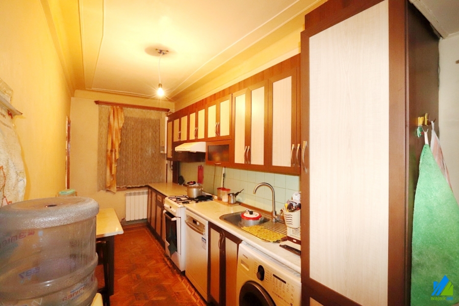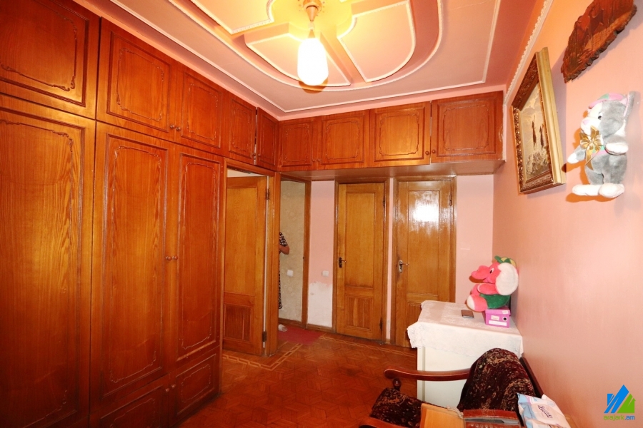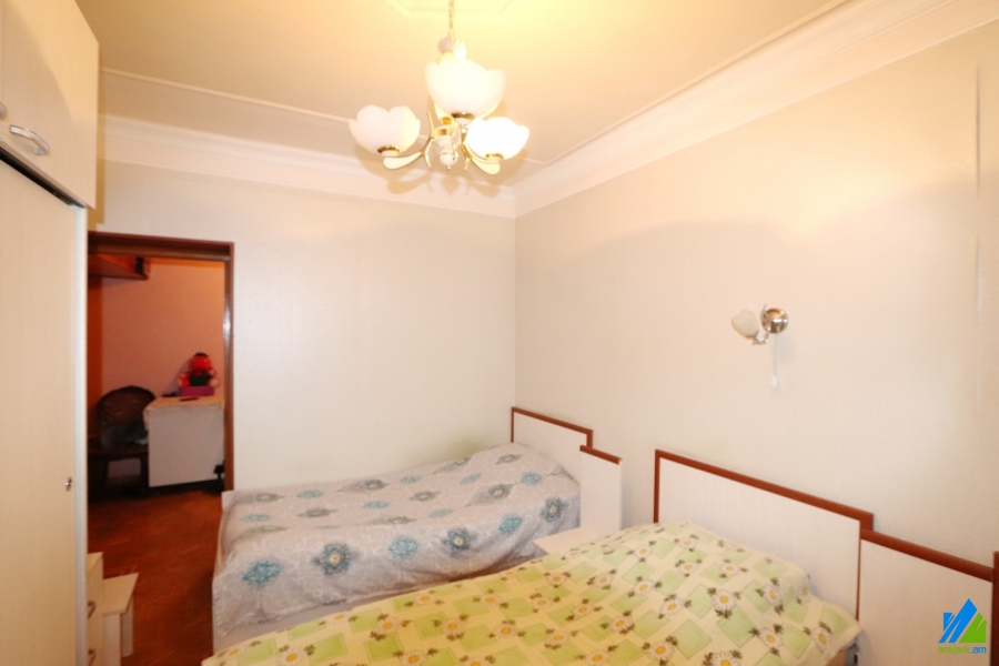 An apartment for sale in G. Nzhdeh Street. The rooms' quantity is 3 ( a hall and 2 bedrooms). The apartment is in the middle condition and is located on the 8th floor of the 9-storey panel building that is stationed in the 1st line. The entrance door is made of iron, the windows are euro-based, the floor is covered by parquet. The bathroom is separate and former tiled, the electric wires and pipes are newly changed. It has a balcony, iron garage (+7000$), heating system and is supplied with constant water and gas. The entrance is from the yard. The view is towards the yard. The apartment is being sold with furniture (+3000$).