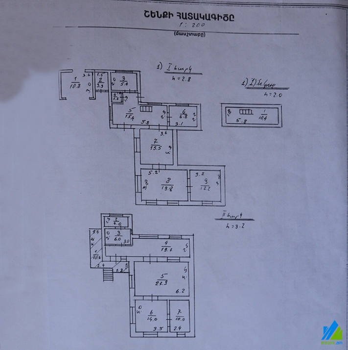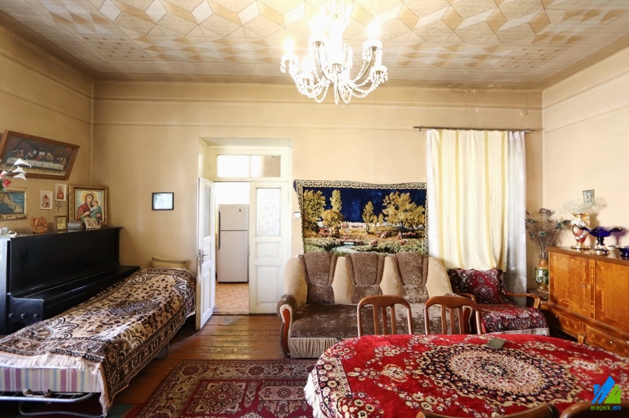 2-storey house for sale on Aygestan's 5th Street. The rooms' quantity is 6 (2 halls and 4 bedrooms). The house is middle renovated and is stationed on the 1st line. The entrance door is iron-made, the windows are wooden. The bathrooms (2) are combined and former tiled. The electric wires and pipes are newly changed. The house has nice yard with decorative trees, garden with fruitful trees, flowerbed, stone fence, garage, cellar, balcony and is supplied with constant water and gas. The area of free land is 200 sq.m. The front lenght of the land is 16m. The front lenght of the building is 7m.