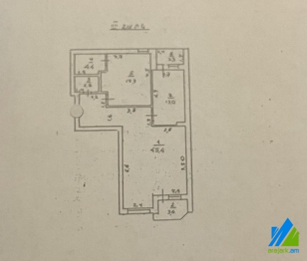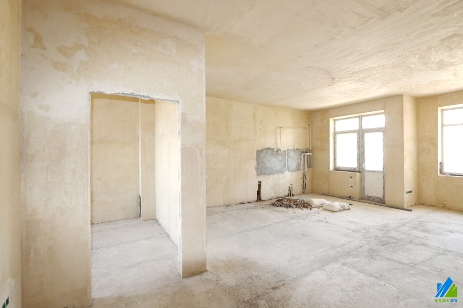 An apartment for sale in Hovsepyan Street. The rooms' quantity is 3 ( a hall and 2 bedrooms). The apartment is in the zero condition and is located on the 3rd floor of the 5-storey new built building. The entrance door is iron-made, the windows are euro-based. The bathrooms are combined and separate. It has 2 balconies and is supplied with constant water and gas. The view is towards the yard and the city. The construction of the building is completed, the inner renovation is in the process. There are 56-157 sq.m 2,3,4 room apartments. The apartments on the cockloft are small. 1sq.m is 1650sq.m.