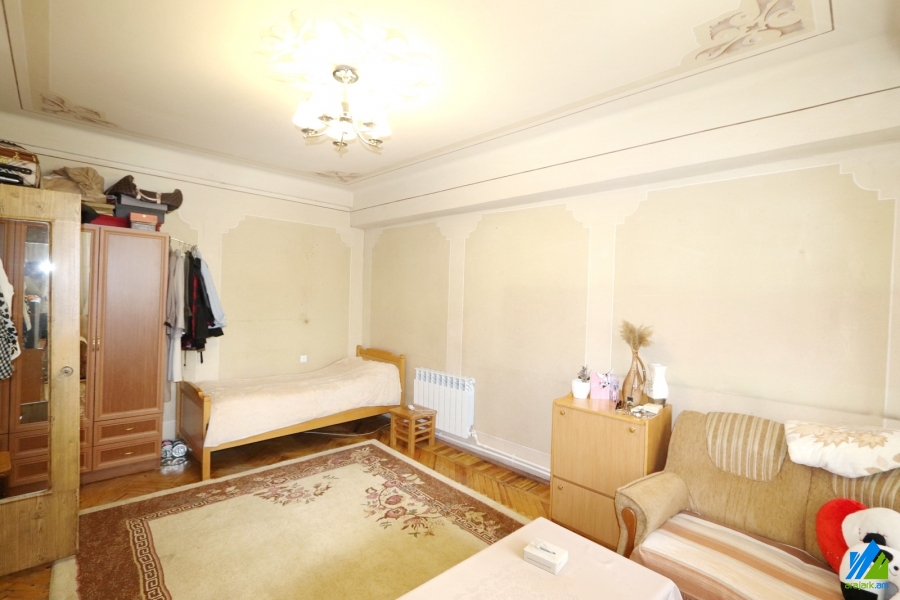 An apartment for sale in Nar-Dos Street. The rooms' quantity is 1 ( a hall). The apartment is in the state condition and is located on the 2nd floor of the 9-storey panel building that is stationed on the 1st line. The entrance door is iron-made, the windows are euro-based, the floor is covered by parquet. The bathroom is combined and former tiled, the electric wires are newly changed. It has a balcony, heating system and is supplied with constant water and gas. The view is towards the street.