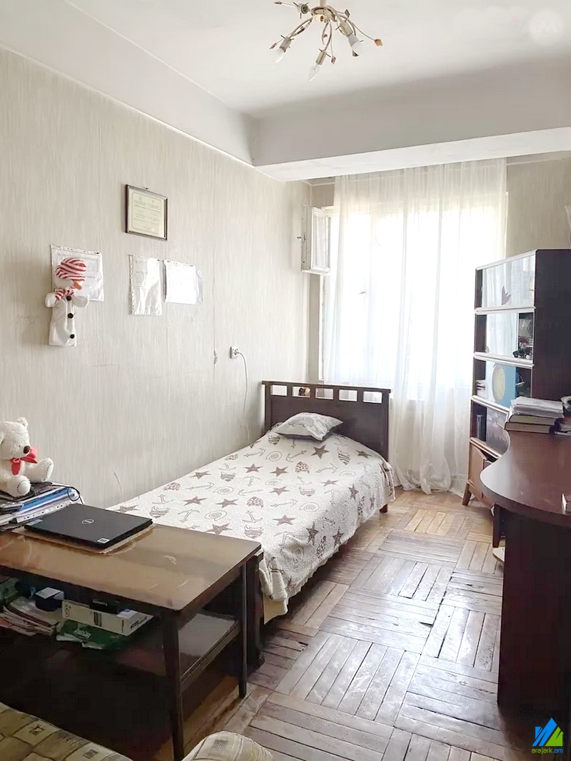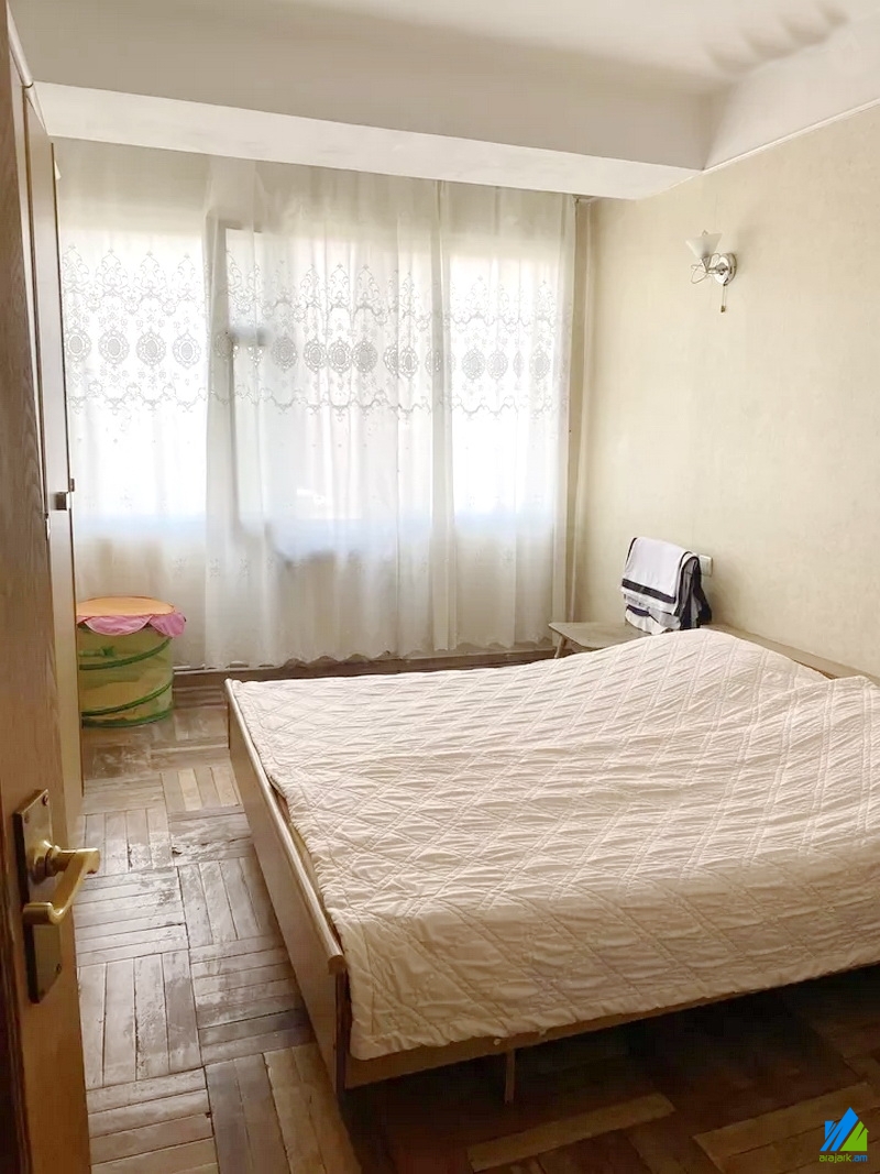 An apartment for sale in Mamikonyants Street. The rooms' quantity is 3 ( a hall and 2 bedrooms). The apartment is in the state condition and is located on the 5th floor of the 14-storey panel building. The entrance door is iron-made, the windows are wooden, the floor is covered by parquet. The bathroom is separate and former tiled, the electric wires are newly changed. It has a balcony, heating system, parking and is supplied with constant water and gas. The view is towards the yard.