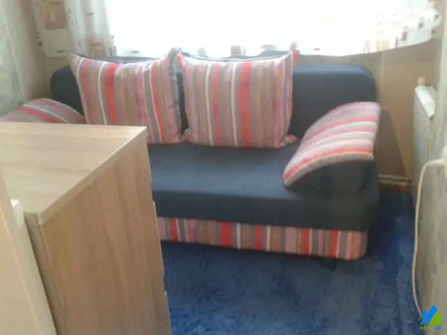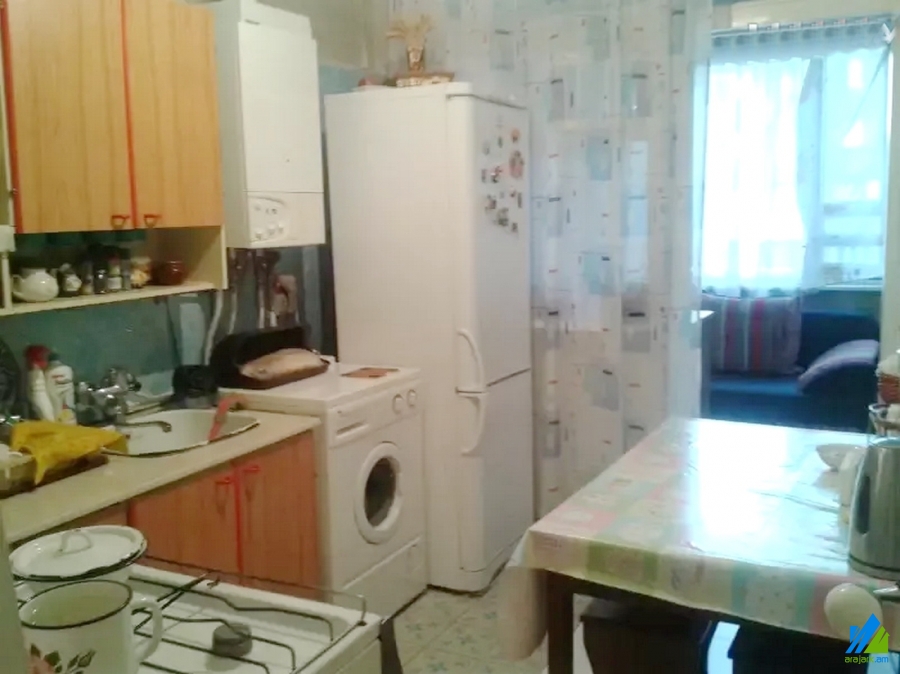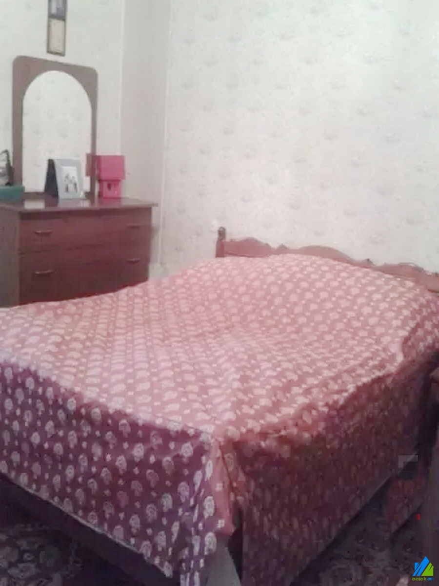 An apartment for sale in Nar-Dos Street. The rooms' quantity is 2 ( a hall and a bedroom). The apartment is in the middle condition and is located on the 8th floor of the 9-storey panel building that is stationed on the 1st line. The entrance door is iron-made, the windows are wooden, the floor is covered by parquet. The bathroom is separate and former tiled, the electric wires are newly changed. It has 2 balconies, heating system and is supplied with constant water and gas. The view si towards the yard and the street.