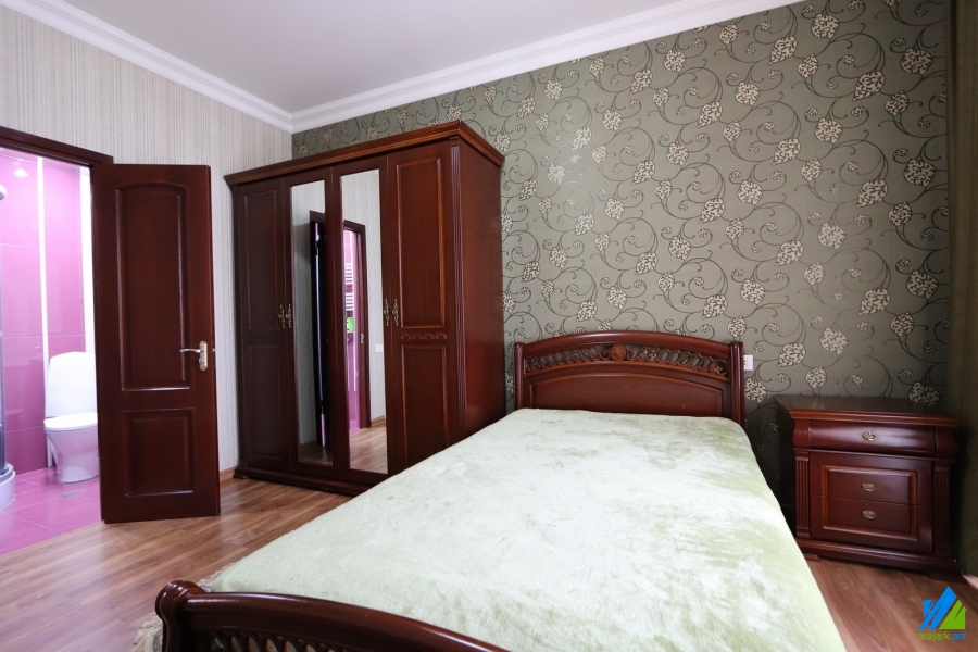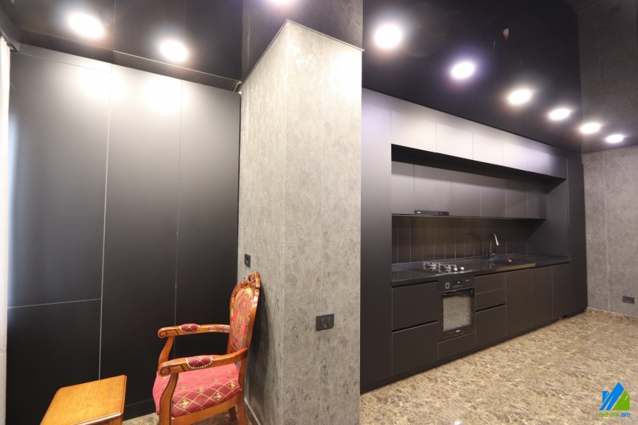 An apartment for rent in Baghramyan 1st Blind Alley. The rooms' quantity is 3 ( a hall and 2 bedrooms). The apartment is modern renovated and is located on the 8th floor of the 10-storey new built building that is stationed on the 1st line. The entrance door is iron-made, the windows are euro-based, the floor is covered by laminate, solid granite. The bathroom is combined, separate and modern tiled. It has a balcony, heating system and is supplied with constant water and gas. The view is towards the street.