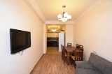 An apartment for sale in Small Center. The rooms' quantity is 3 ( a hall and 2 bedrooms). The apartment is newly renovated and is located on the 13th floor of the 21-storey new built building that is stationed on the 1st line. The entrance door is iron-made, the windows are euro-based, the floor is covered by laminate and solid granite. The bathrooms (2) are combined and modern tiled. It has a central heating system and is supplied with constant water and gas. The apartment is being sold with furniture and electric devices.