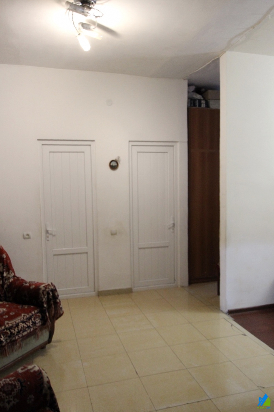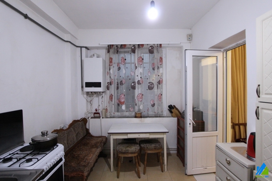 An apartment for sale in Moldovakan Street. The rooms' quantity is 3 (a hall and 2 bedrooms). The apartment is in the middle condition and is located on the high-rise ground floor of the 2-storey stone building. The entrance door is iron-made, the windows are euro-based, the floor is covered by parquet and is tiled. The bathroom is combined and tiled, the electric wires and pipes are newly changed. The apartment has a garage, cellar, balcony, heating system and is supplied with constant water and gas. It is being sold with funiture and technique.