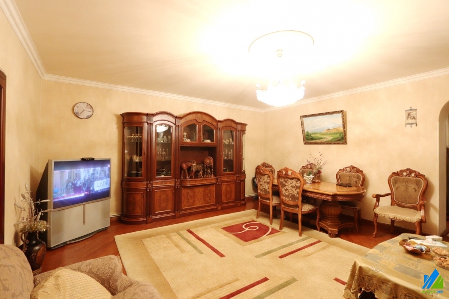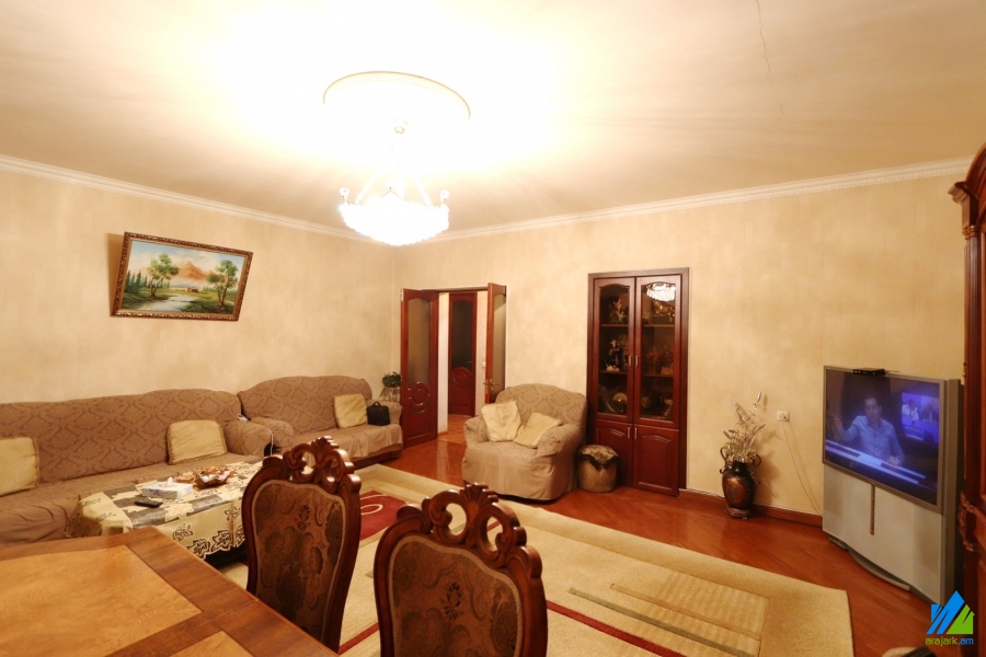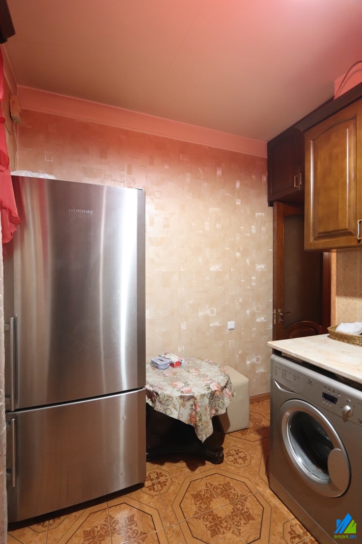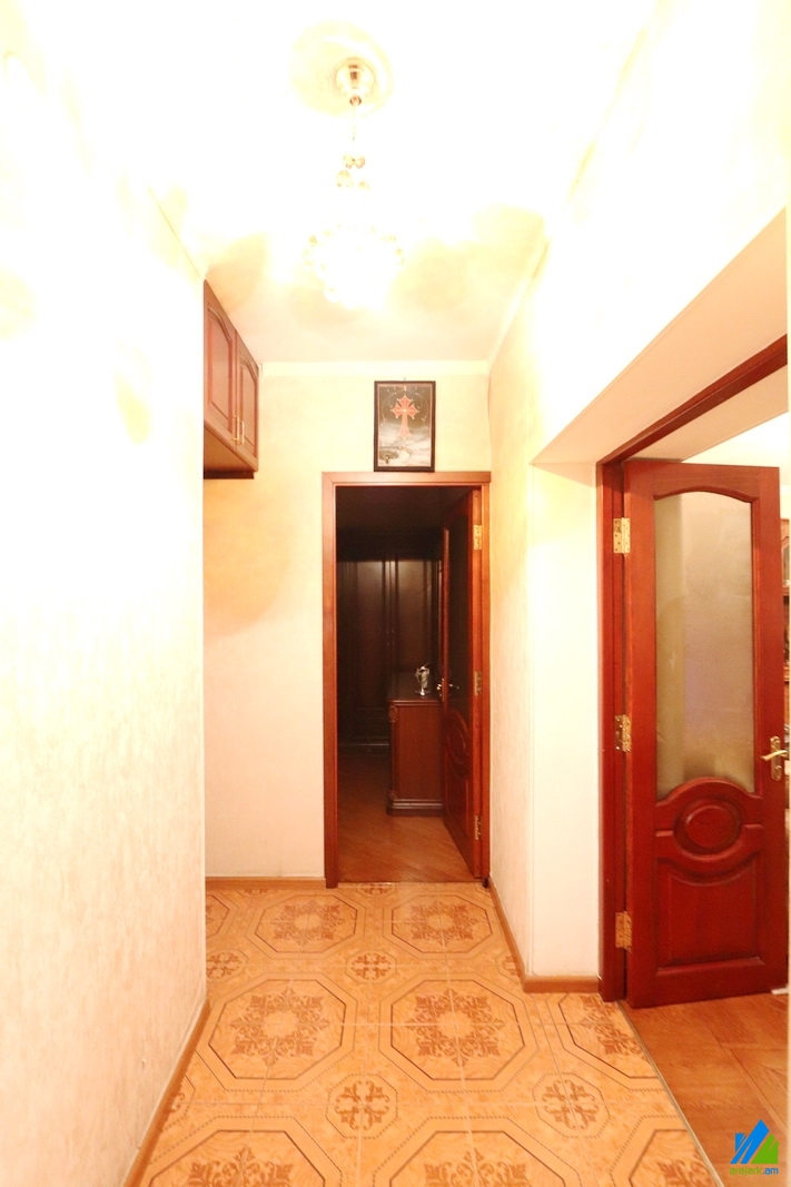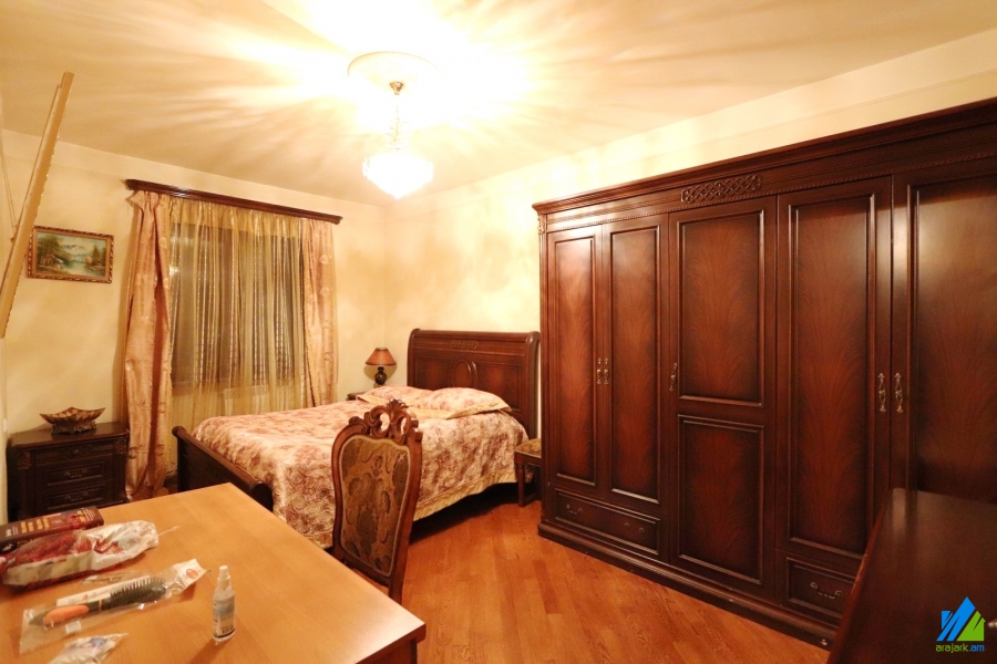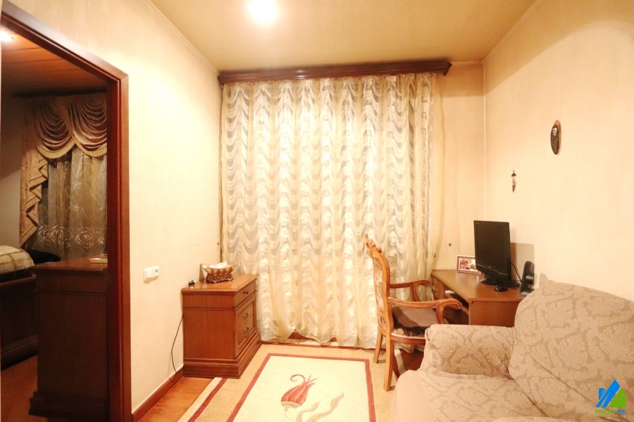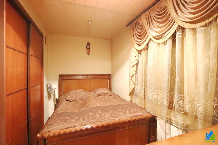 An apartment for sale in Eghbayrutyan Street. The rooms' quantity is 3 ( a hall and 2 bedrooms). The apartment is newly renovated and is located on the 2nd floor of the 5-storey stone building that is stationed on the 1st line. The entrance door is iron0made, the windows are euro-based, the floor is covered by parquet and is tiled. The bathroom is combined and tiled, the electric wires and pipes are newly changed. It has a balcony, storage, heating system and is supplied with constant water and gas. The view is towards the yard. The apartment is being sold with furniture and electric devices.