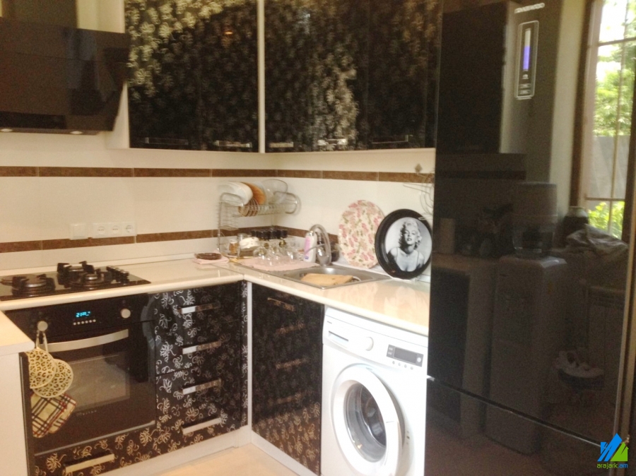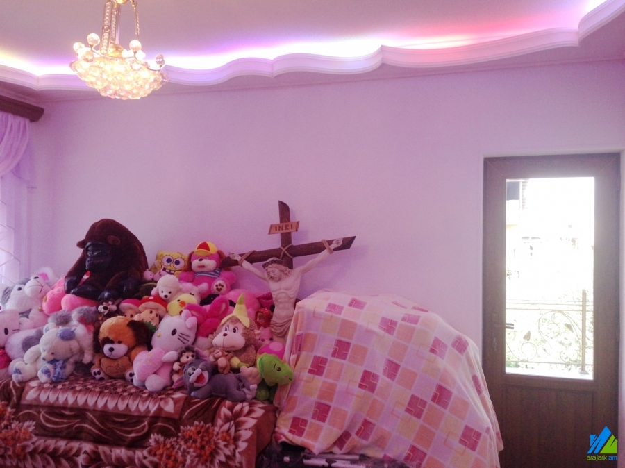 2-storey house for sale in Haghtanak block. The rooms' quantity is 4 ( a hall and 3 bedrooms). The house is modern renovated. The entrance door is iron-made, the windows are euro-based, the floor is covered by parquet and solid granite. The bathrooms(2) are combined ad modern tiled, the electric wires and pipes are newly changed. It has a cellar, balcony, heating system, nice yard, pool, garden with fruitful and decorative trees and is supplied with constant water and gas. The length of the forehead of the land is 20m, the length of the forehead of the house is 10m. The house is being sold with some furniture.