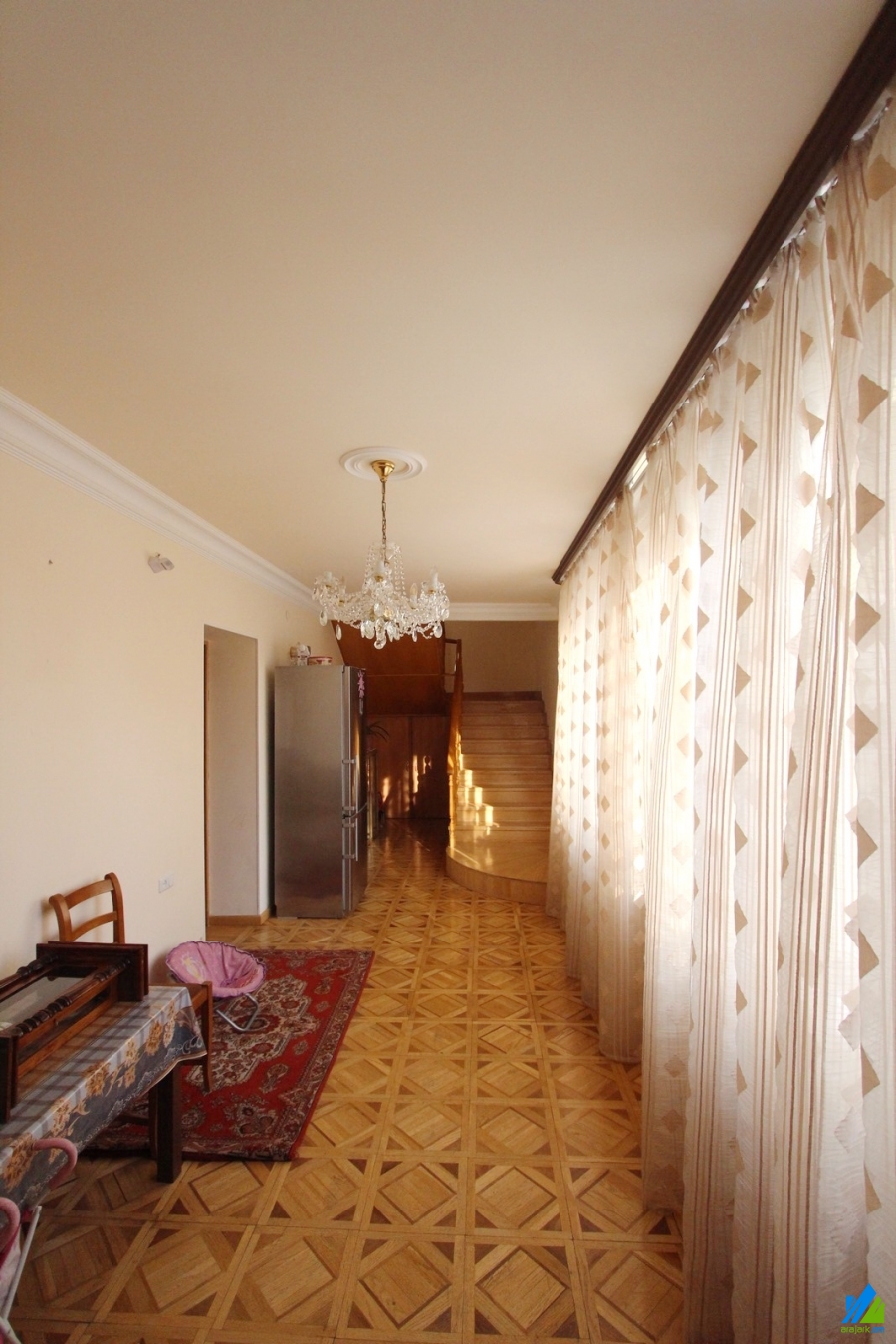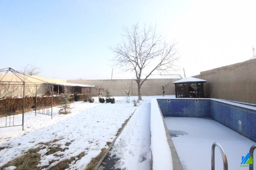 2-storey house for sale in Dzoraghbyur. The rooms' quantity is 9 (a hall and 8 bedrooms). The house is newly renovated. The entrance door is iron-made, the windows are euro-based, the floor is covered by parquet, laminate and is tiled. The bathrooms (9) are combined, separate and tiled. The house has a stone fence, garden with fruitful and decorative trees, pool, summer kitchen, fireplace, cellar, attic, garage, balcony, game room, sauna, heating system and is supplied with constant water and gas.
