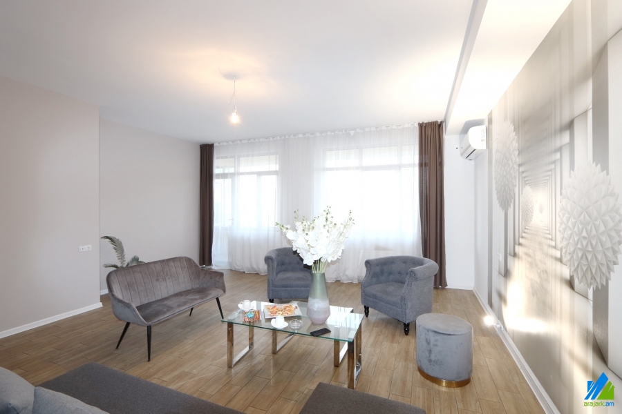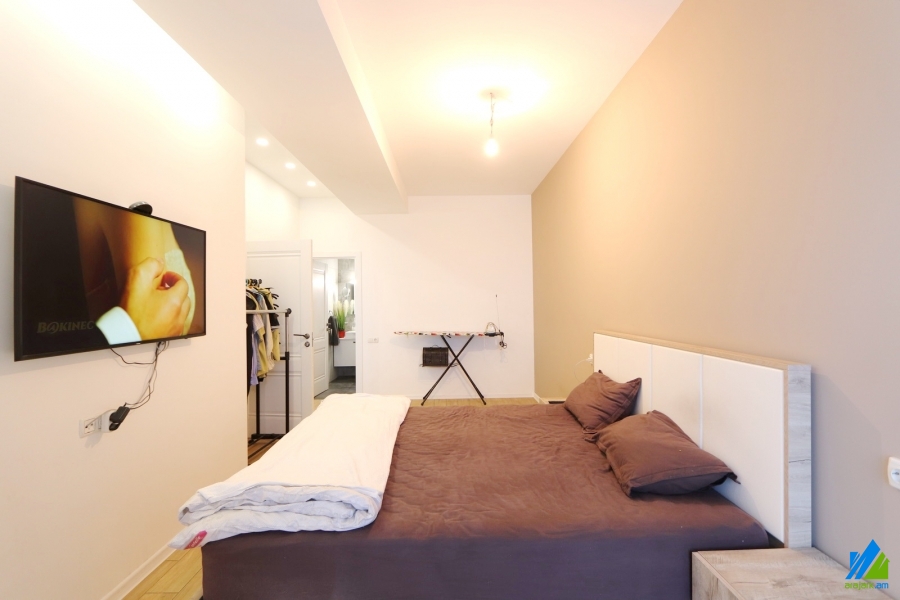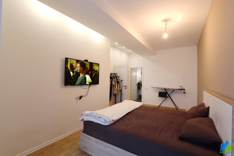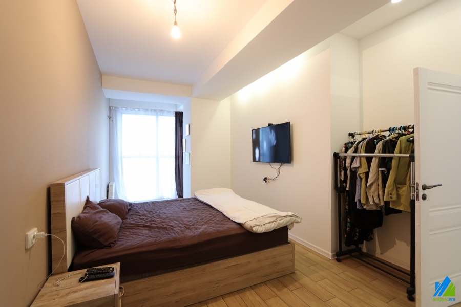 An apartment for sale in Tsitsernakaberd Highway. The rooms' quantity is 2 ( a hall and a bedroom). The apartment is modern renovated and is located o the 12th floor of the 21-storey new built building. The entrance door is iron-made, the windows are euro-based, the floor is covered by solid granite. The bathroom s are combined, separate and modern tiled. It has a balcony, heating system, parking and is supplied with constant water and gas. The apartment is being sold with some furniture and parking.