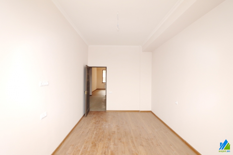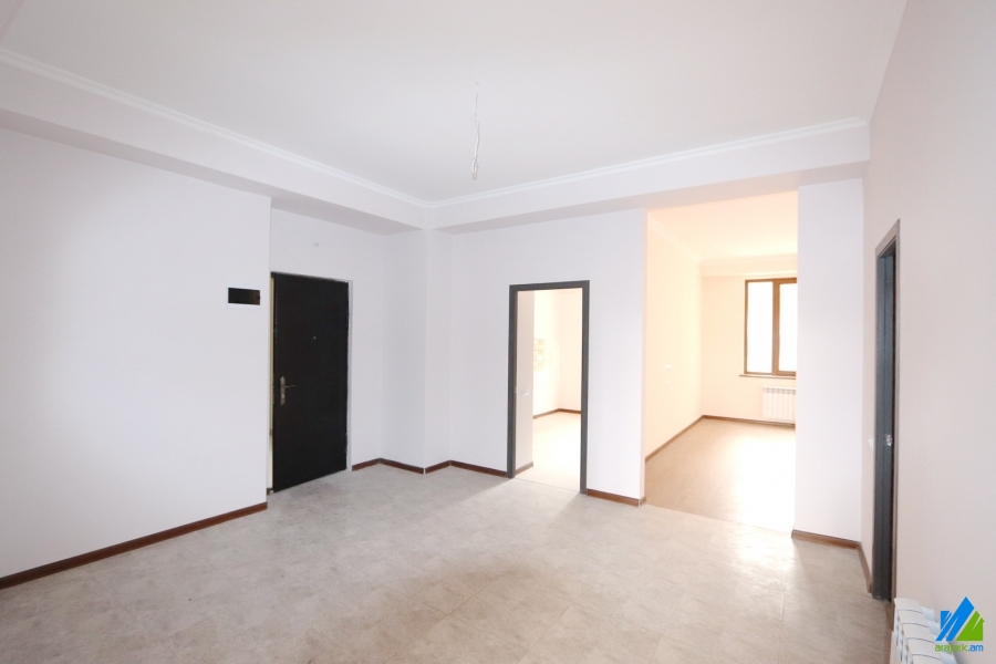 An apartment for sale in Adonts Street. The rooms' quantity is 3 ( a hall and 2 bedrooms). The apartment is newly renovated and is located on the 5th floor of the 8-storey new built building. The entrance door is iron-made, the windows are euro-based, the floor is covered by laminate. The bathroom is combined, separate and modern tiled. It has 2 balconies, central heating system, parking (+10000$) and is supplied with constant water. The view is towards the yard.
