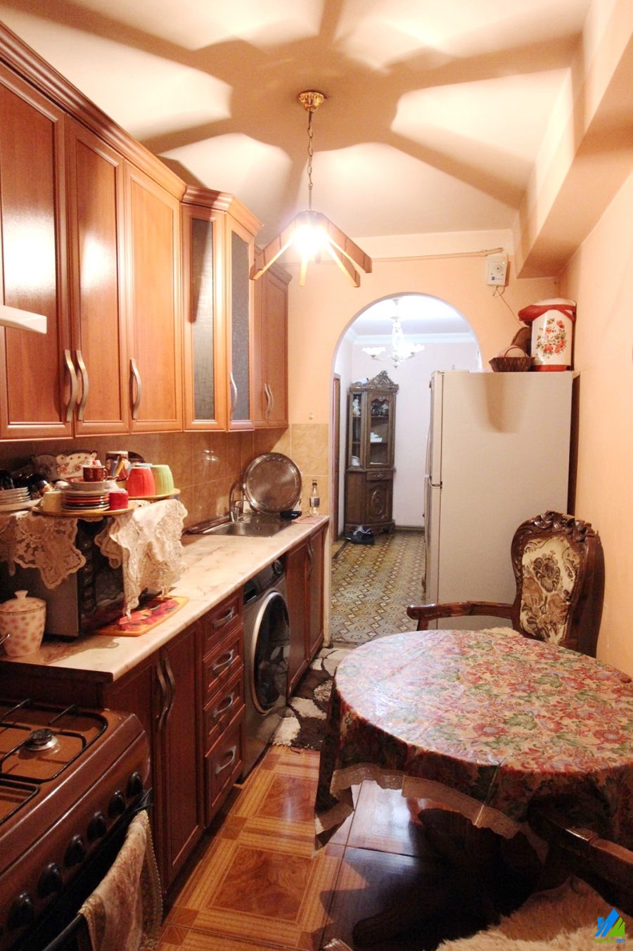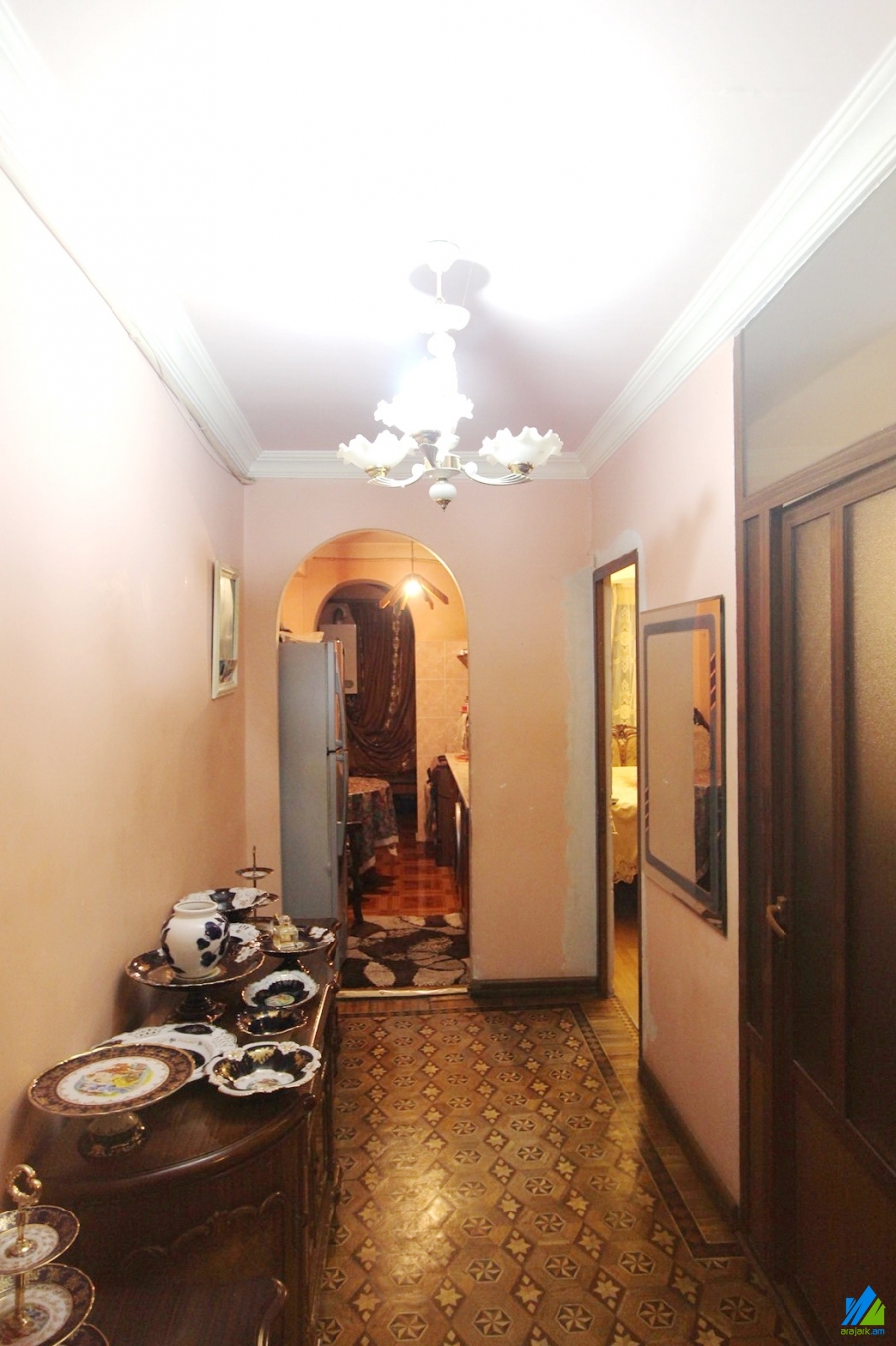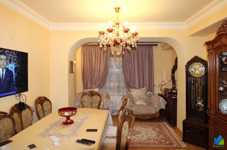 An apartment for sale in Duryan Block. The rooms' quantity is 2 ( a hall and a bedroom). The apartment is newly renovated and is located on the top floor of the 9-storey panel building. The entrance door is iron-made, the windows are euro-based, the floor is covered by parquet. The bathroom is combined and tiled, the electric wires and pipes are newly changed. The apartment has a storage-room in the entry, balcony, heating system and is supplied with constant water and gas. The apartment is being sold with furniture and technique.