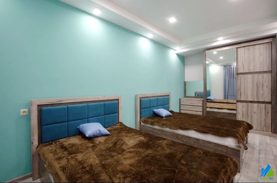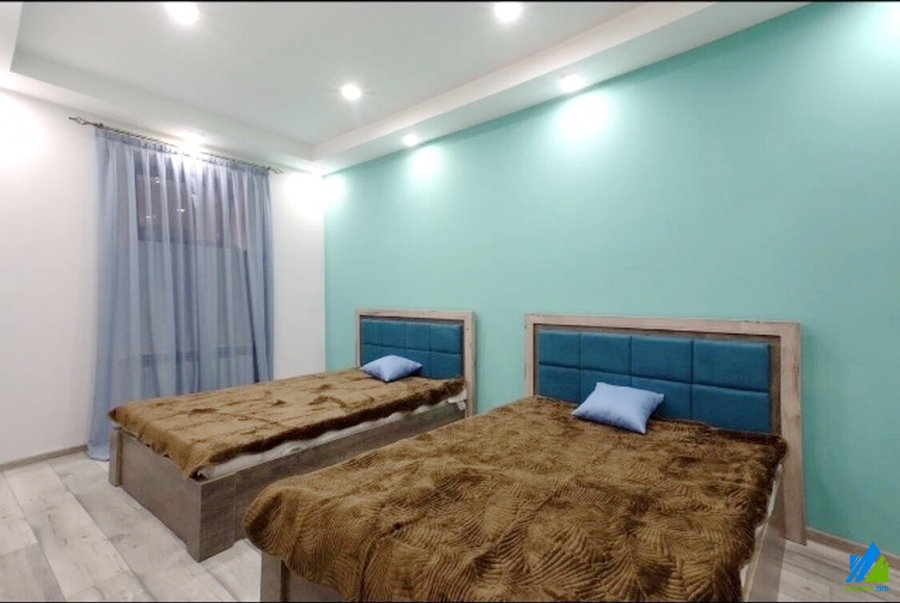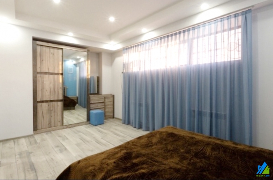 An apartment for rent in Sarmen Street. The rooms' quantity is 3 ( a hall and 2 bedrooms). Separate entrance. The apartment is modern renovated and is located on the ground floor of the 3-storey stone building. The entrance door is iron-made, the windows are euro-based, the floor is covered by laminate and solid granite. The bathroom is combined and modern tiled, the electric wires and pipes are newly changed. It is supplied with constant water and gas.