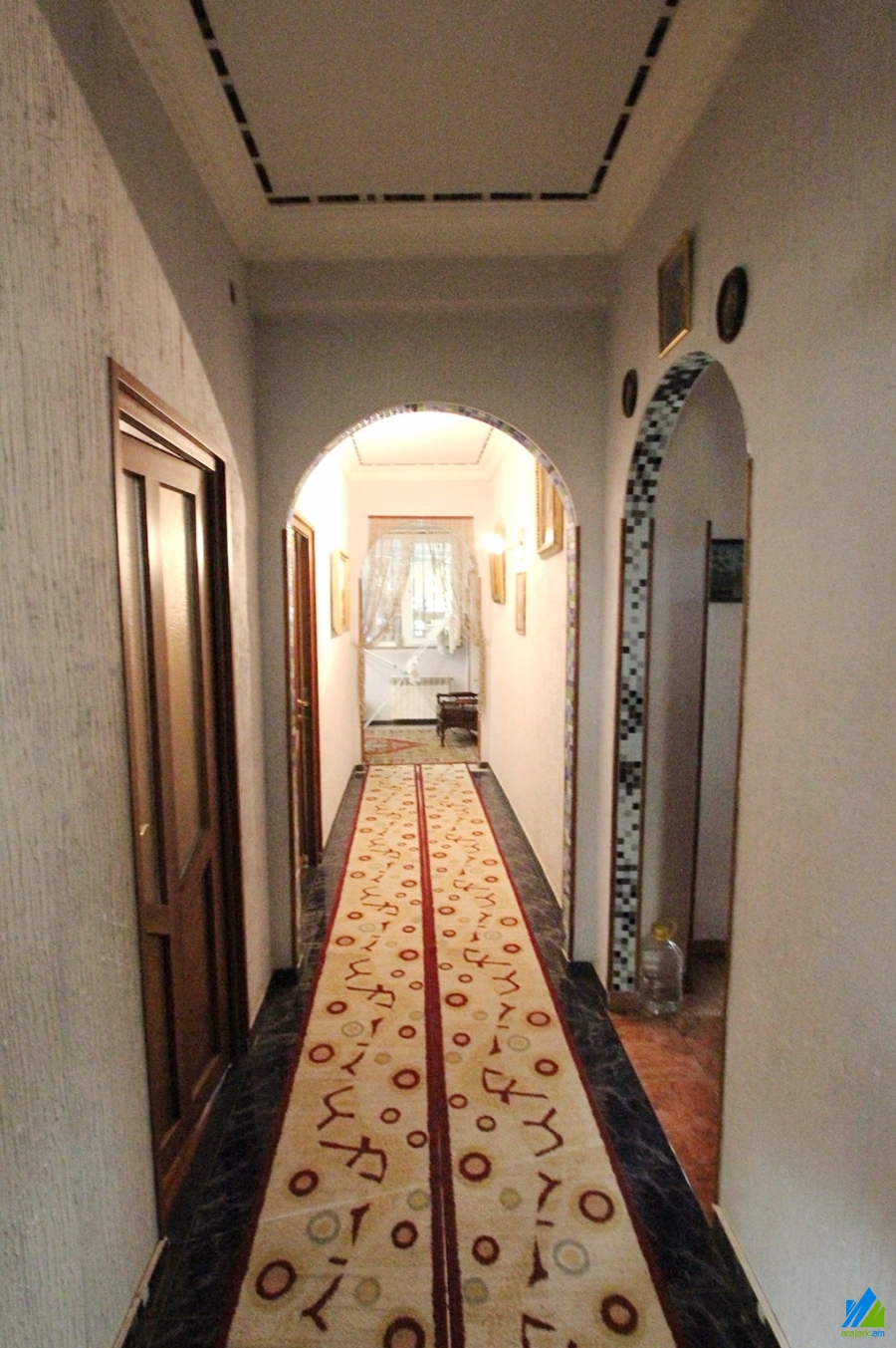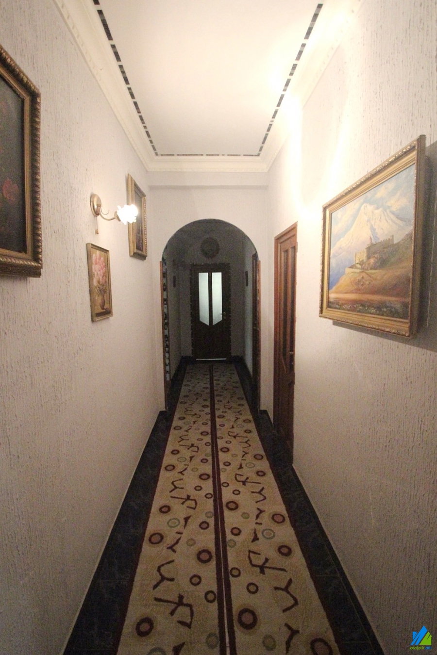 2-storey house for sale in Nor Nork 7th Block. The rooms' quantity is 8 (a hall and 7 bedrooms). The house is newly renovated. The entrance door is iron-made, the windows are euro-based, the floor is covered by parquet and is tiled. The bathrooms (4) are combined and tiled, the electric wires and pipes are newly changed. The house has a stone fence, landscaped yard with decorative trees, garage (40 sq.m), cellar (150 sq.m), summer kitchen, fireplace, built-in closets, heating system and is supplied with constant water and gas.