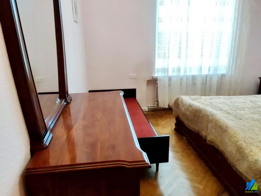 An apartment for sale in Baghramyan Avenue. The rooms' quantity is 3 (1 hall, 2 bedroom). The apartment is newly renovated and is located on the 4th floor of the 4-storey stone building and is stationed in the 1st line. The entrance door is iron-made, the windows are euro-based, the floor is covered by parquet. The bathroom is separate and former tiled. The electric wires and pipes are newly changed. It has a balcony, heating system and is supplied with constant water and gas.