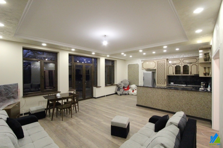 2-storey house for sale in Arabkir. The rooms' quantity is 4 (a hall and 3 bedrooms). The house is newly renovated. The entrance door is iron-made, the windows are euro-based, the floor is covered by laminate and is tiled. The bathrooms (2) are combined and modern tiled. The house has a stone fence, landscaped yard with decorative trees, terrace, built-in closets, kithcen furniture and is supplied with constant water.