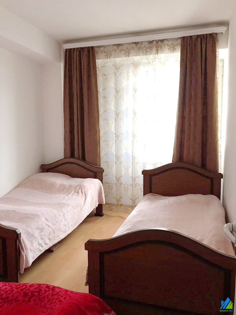 An apartment for rent in Sasuntsi Davit Street. The rooms' quantity is 3 ( a hall and 2 bedrooms). The apartment is newly renovated and is located on the 3rd floor of the 5-storey stone building. The entrance door is iron-made, the windows are euro-based, the floor is covered by parquet and solid granite. The bathroom is separate and tiled, the electric wires and pipes are newly changed. It has a balcony and is supplied with constant water and gas.