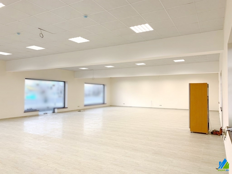 Commercial area for rentin Edjmiatsin Highway. The area is modern renovated that is stationed in the 1st line. The entrance door is glass-made, the windows are euro-based, the floor is tiled. The electric wires and pipes are newly changed. It has showcases, parking, three-phase electricity and is supplied with constant water. The length of the forehead of the area is 25m. The land is 300sq.m. The rent price is 700000 AMD.