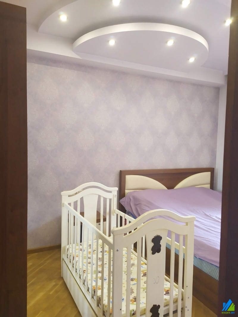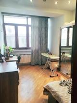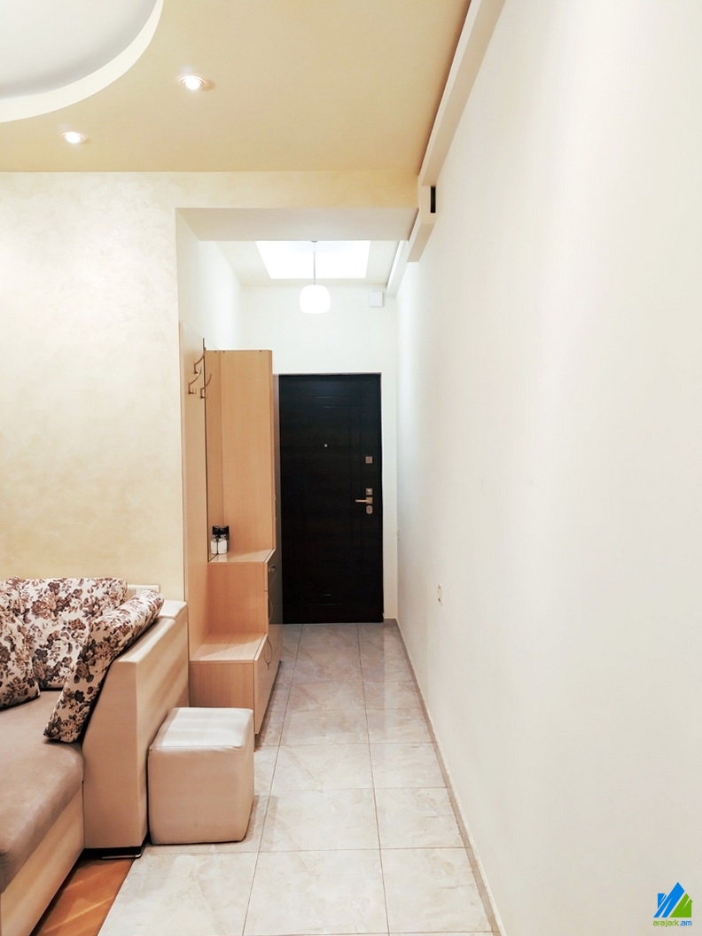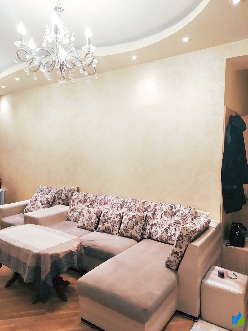 An apartment for sale in Aram's Street. The rooms' quantity is 3 (1 hall, 2 bedrooms). The apartment is newly renovated and is located on the 3rd floor of the 10-storey new-built building. The entrance door is iron-made, the windows are euro-based, the floor is covered by laminate and tiled. The bathroom is combined and tiled. It has a balcony, heating system and is supplied with constant water and gas. The apartment is being sold with furniture and technique.