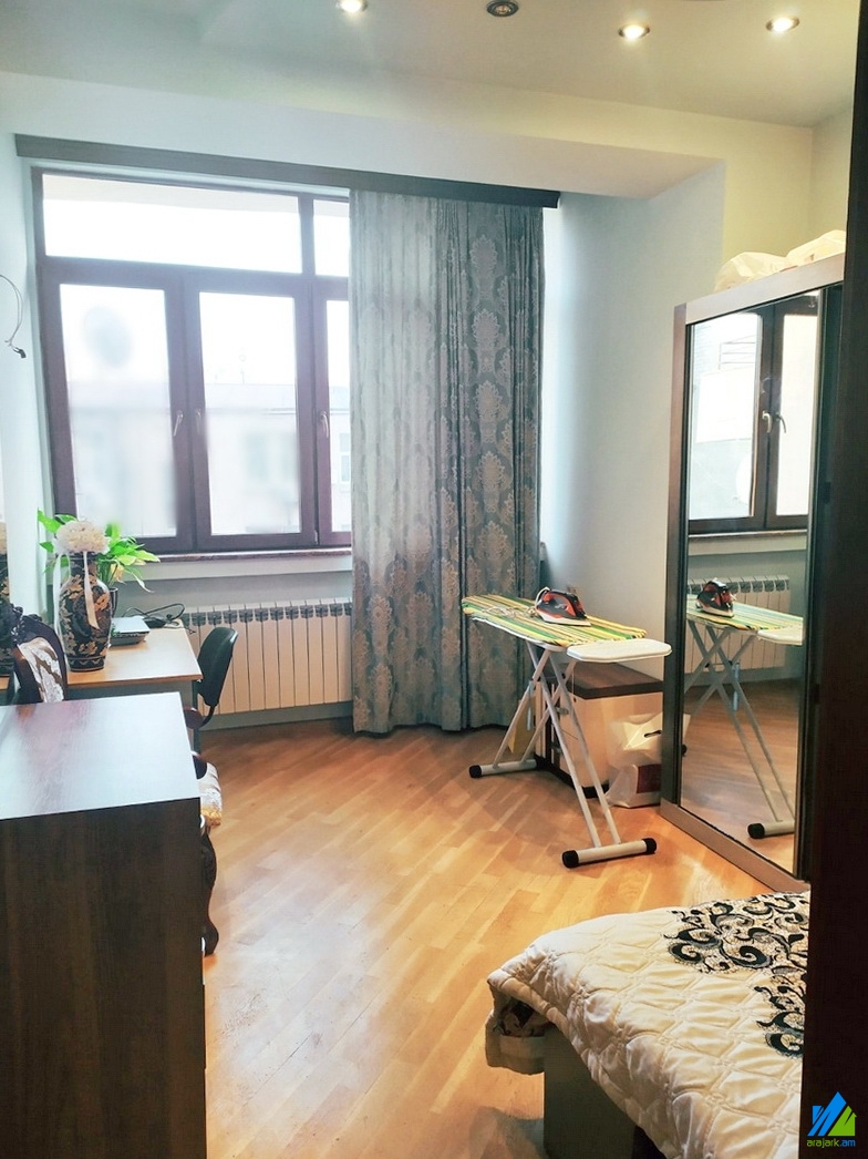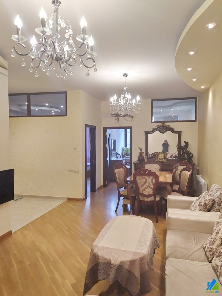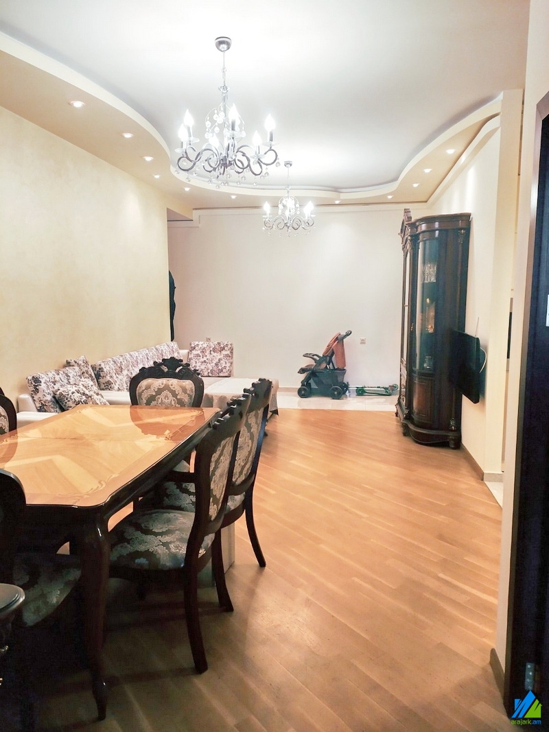 Վաճառվում է 3 սենյականոց բնակարան Արամի փողոցում՝ 10 հարկանի նորակառույց շենքի 3-րդ հարկում։ Բնակարանը կապիտալ վերանորոգված է։ Մուտքի դուռը՝ երկաթյա, պատուհանները՝ եվրո, հատակը՝ լամինատ, սալիկապատ։ Սանհանգույցը՝ համակցված, սալիկապատ։ Ունի բաց լոջա, ջեռուցման համակարգ, մշտական ջուր և գազ։ Վաճառվում է գույքի և տեխնիկայի հետ միասին: