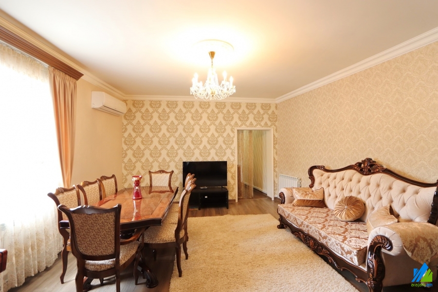 2-storey house for sale in Noragyugh Street. The rooms' quantity is 10 ( 4 hall, 6 bedrooms). The house is partial newly renovated/in the state condition. The entrance door is iron-made, the windows are euro-based, the floor is covered by laminate and tiled. The bathrooms (2) are combined (1 is modern tiled, 2 is in the state condition). It has stone garage 60 sq.m, high-stone fence, heating system and is supplied with constant water and gas. The length of the forehead of the land is 6 m. , The length of the forehead of the house is 5 m. The house is currently partially rented. Suitable for building a guest house.