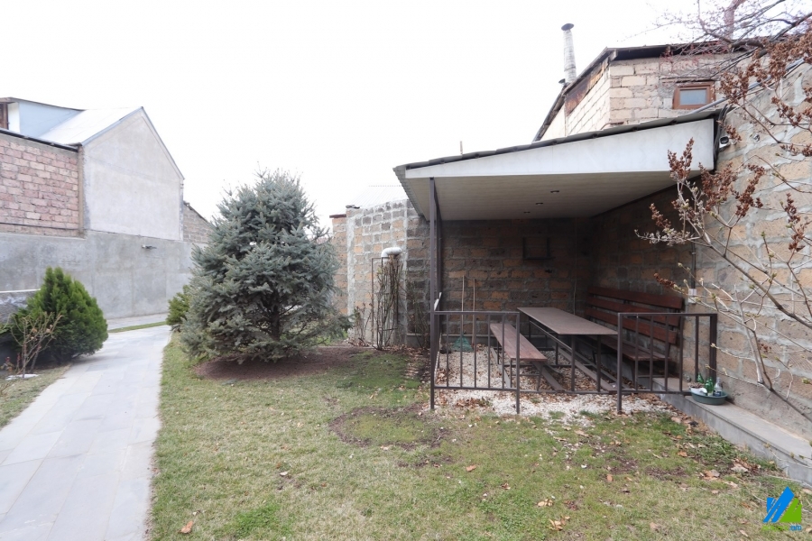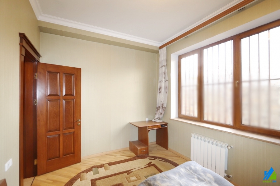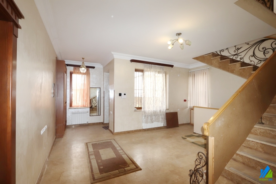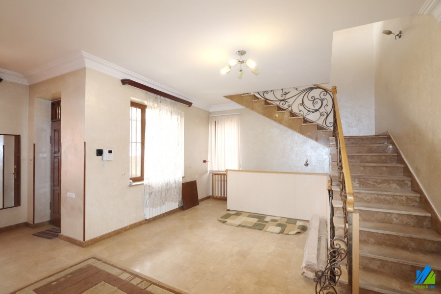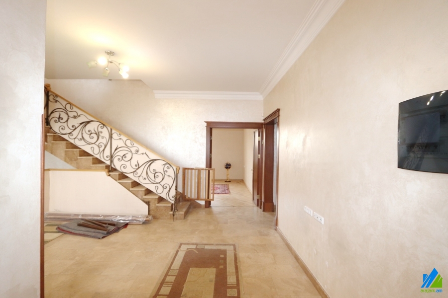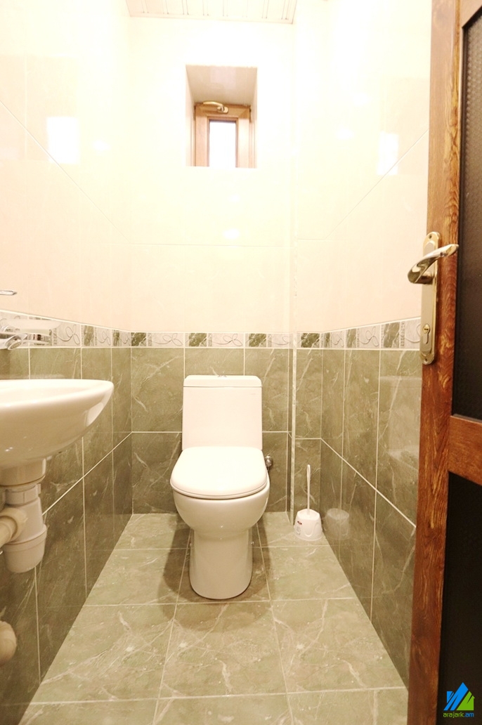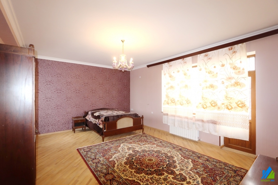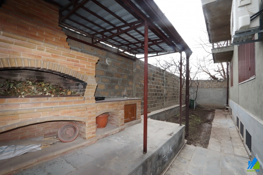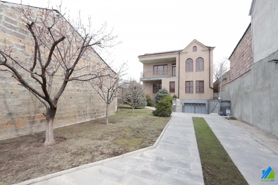 2-storey house for sale or for rent in Kh. Khachatryan Street. The rooms' quantity is 6 ( 2 halls and 4 bedrooms). The house is newly renovated and is stationed in the 1st line. The entrance door is iron-made, the windows are euro-based, the floor is covered parquet and solid granite. The bathrooms(2) are separate and modern tiled, the electric wires and pipes are newly changed. It has 2 balconies, cellar (130sq.m), garage, heating system, fireplace, summer kitchen, nice yard with decorative trees and is supplied with constant water and gas.