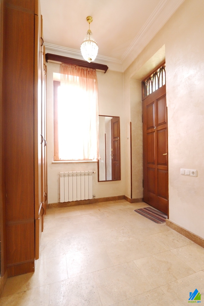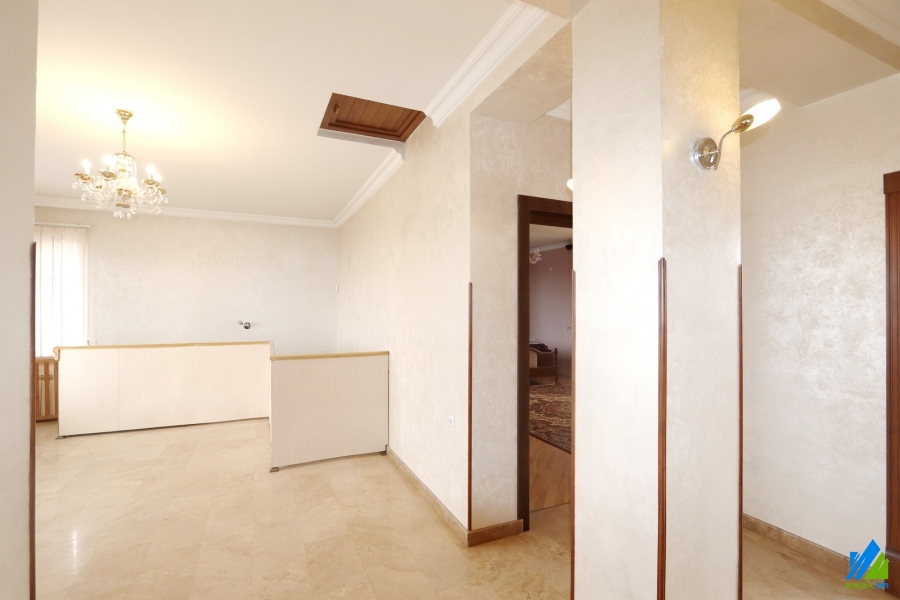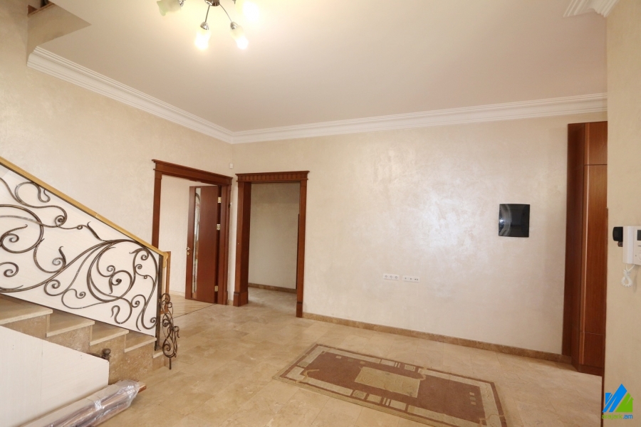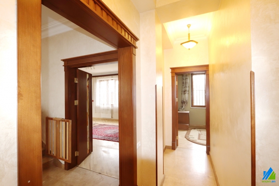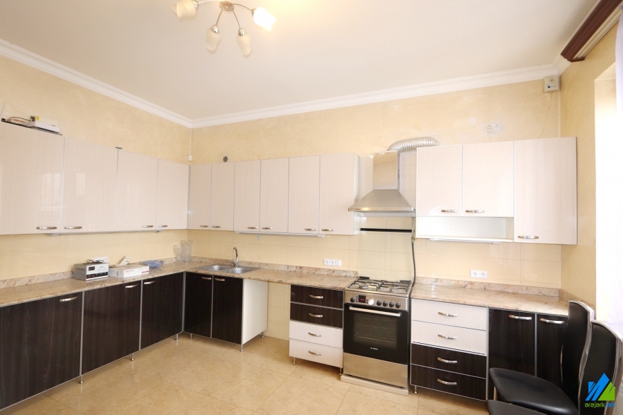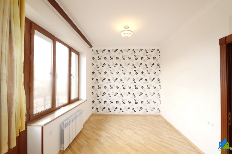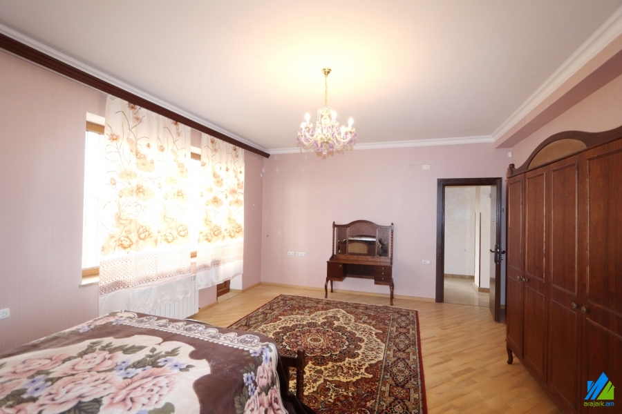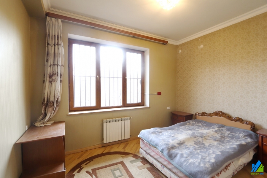2-storey house for sale or for rent in Kh. Khachatryan Street. The rooms' quantity is 6 ( 2 halls and 4 bedrooms). The house is newly renovated and is stationed in the 1st line. The entrance door is iron-made, the windows are euro-based, the floor is covered parquet and solid granite. The bathrooms(2) are separate and modern tiled, the electric wires and pipes are newly changed. It has 2 balconies, cellar (130sq.m), garage, heating system, fireplace, summer kitchen, nice yard with decorative trees and is supplied with constant water and gas.