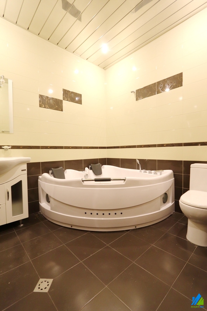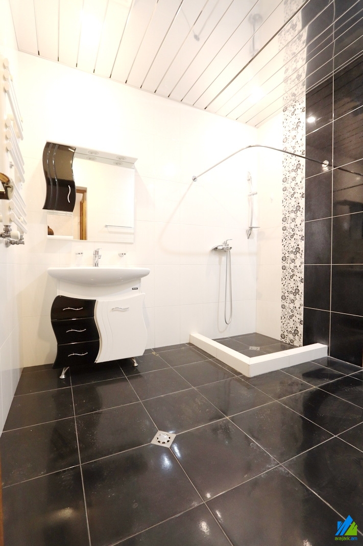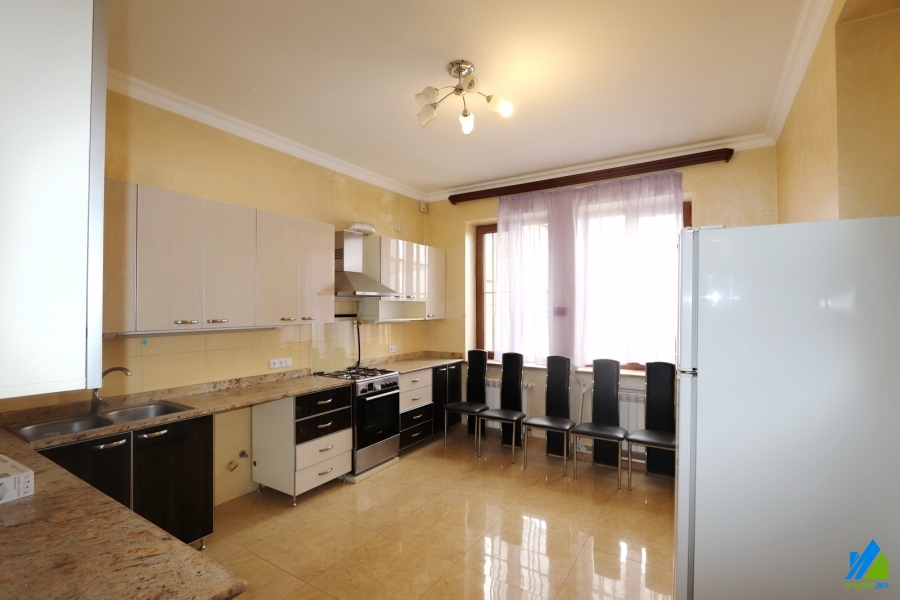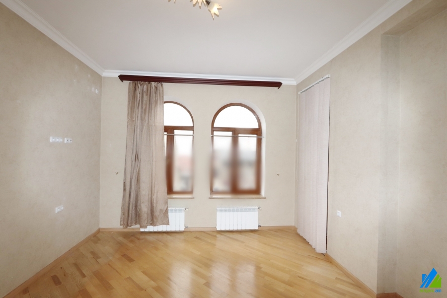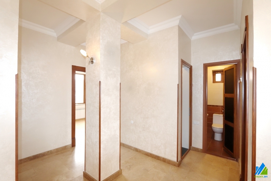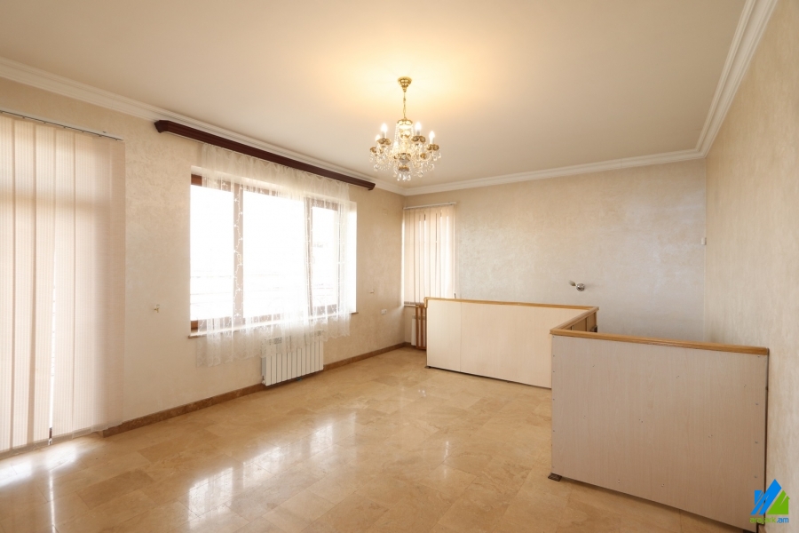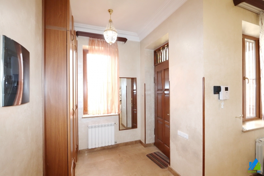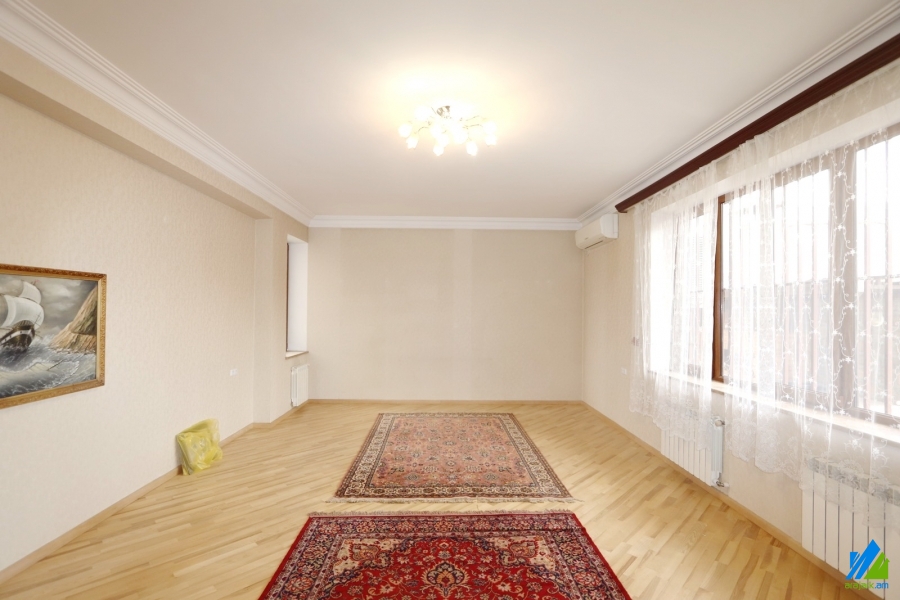 2-storey house for sale or for rent in Kh. Khachatryan Street. The rooms' quantity is 6 ( 2 halls and 4 bedrooms). The house is newly renovated and is stationed in the 1st line. The entrance door is iron-made, the windows are euro-based, the floor is covered parquet and solid granite. The bathrooms(2) are separate and modern tiled, the electric wires and pipes are newly changed. It has 2 balconies, cellar (130sq.m), garage, heating system, fireplace, summer kitchen, nice yard with decorative trees and is supplied with constant water and gas.
