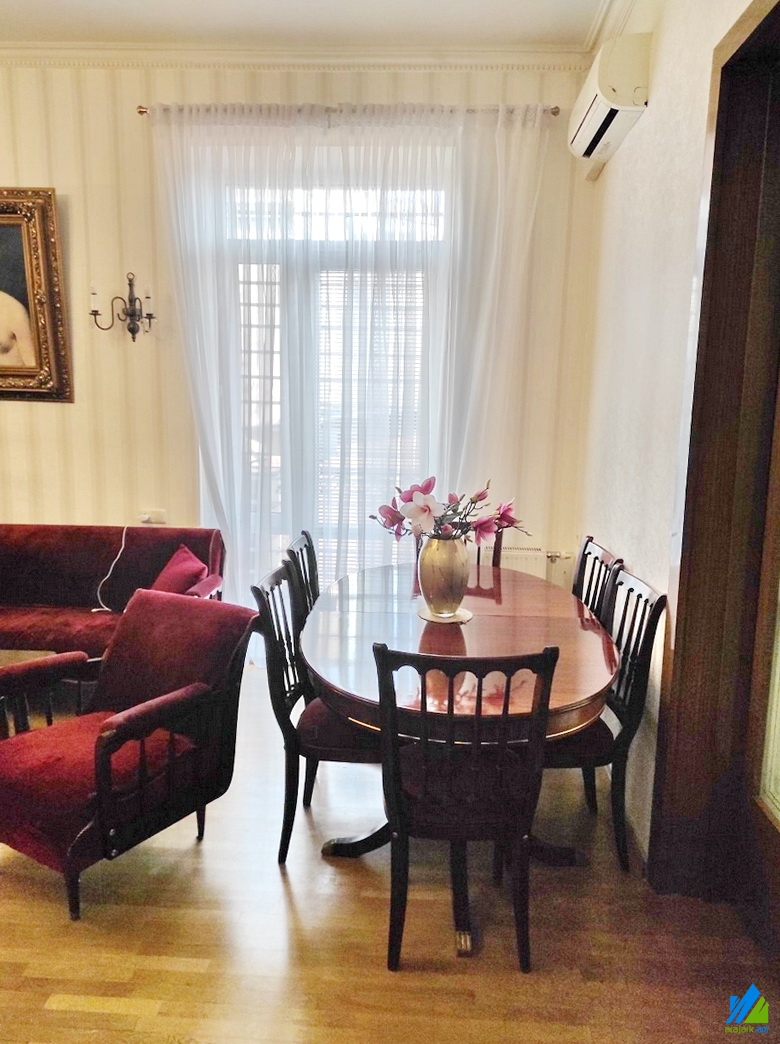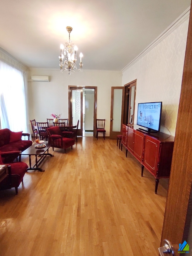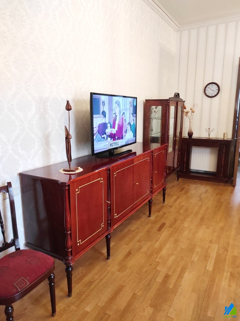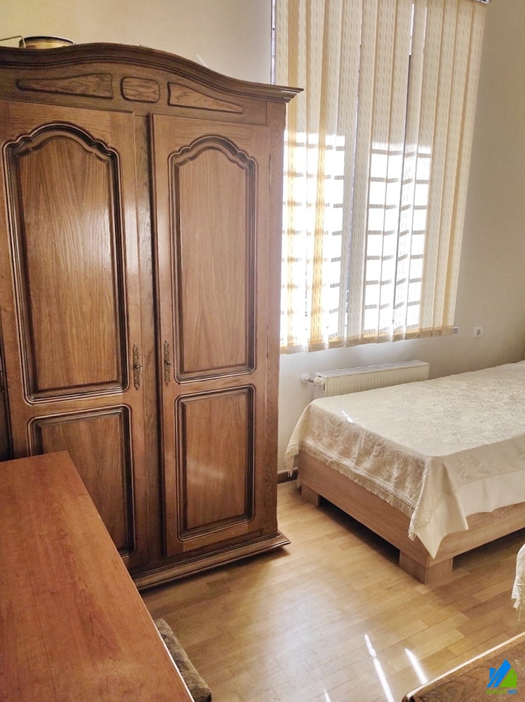 An apartment for rent in Kievyan Street. The rooms' quantity is 3 (1 hall, 2 bedrooms). The apartment is newly renovated and is located on the 2nd floor of the 5-storey stone building that is stationed on the 1st line. The entrance door is iron-made, the windows are euro-based, the floor is covered by parquet, laminate and tiled. The bathroom is combined and modern tiled. The electric wires and pipes are newly changed. It has a balcony, heating system and is supplied with constant water and gas.