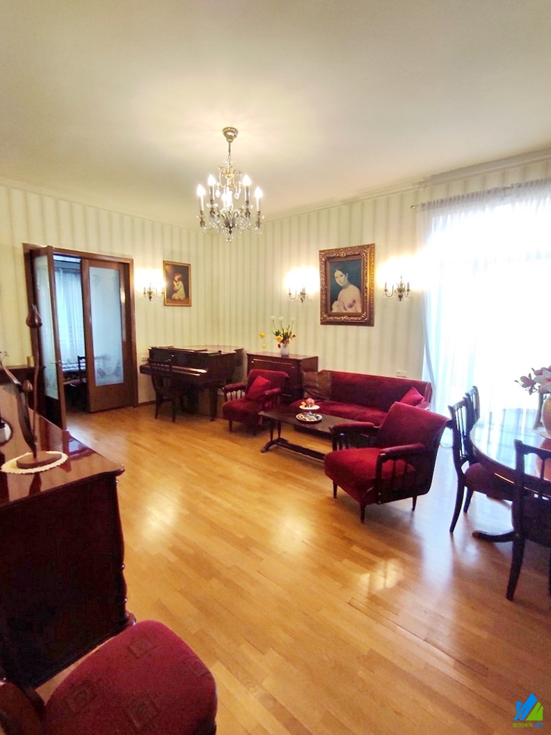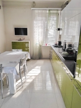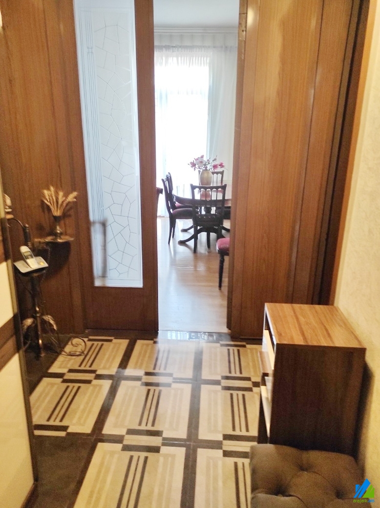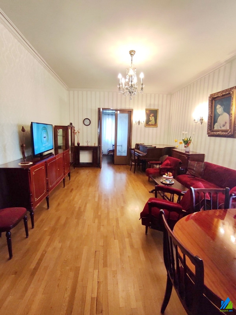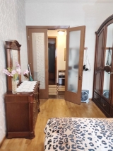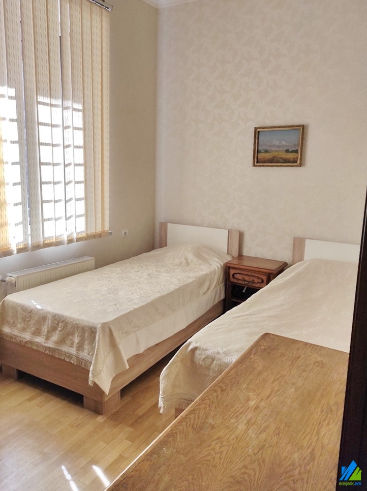 An apartment for rent in Kievyan Street. The rooms' quantity is 3 (1 hall, 2 bedrooms). The apartment is newly renovated and is located on the 2nd floor of the 5-storey stone building that is stationed on the 1st line. The entrance door is iron-made, the windows are euro-based, the floor is covered by parquet, laminate and tiled. The bathroom is combined and modern tiled. The electric wires and pipes are newly changed. It has a balcony, heating system and is supplied with constant water and gas.