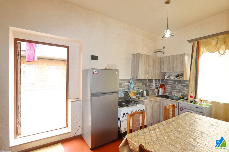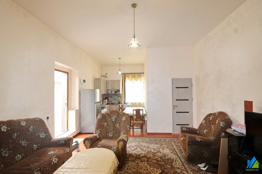 1-storey house for rent in Arinj Village. The rooms' quantity is 2 (1 hall, 1 bedroom). The house is newly renovated. The entrance door is iron-made, the windows are euro-based, the floor covered by laminate. The bathroom is combined and modern tiled. It has heating system and is supplied with constant water and gas. The rent price is 130000 AMD.