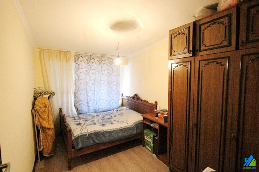 An apartment for sale in Nor Nork 8th Block. The rooms’ quantity is 2 ( a hall and a bedroom). The apartment is in the middle condition and is located on the top floor of the 4-storey stone building. The entrance door is iron-made, the windows are euro-based, the floor is covered by laminate. The bathroom is combined and tiled, the electric wires and pipes are newly changed. The apartment has a balcony, kitchen furniture, heating system and is supplied with constant water and gas.
