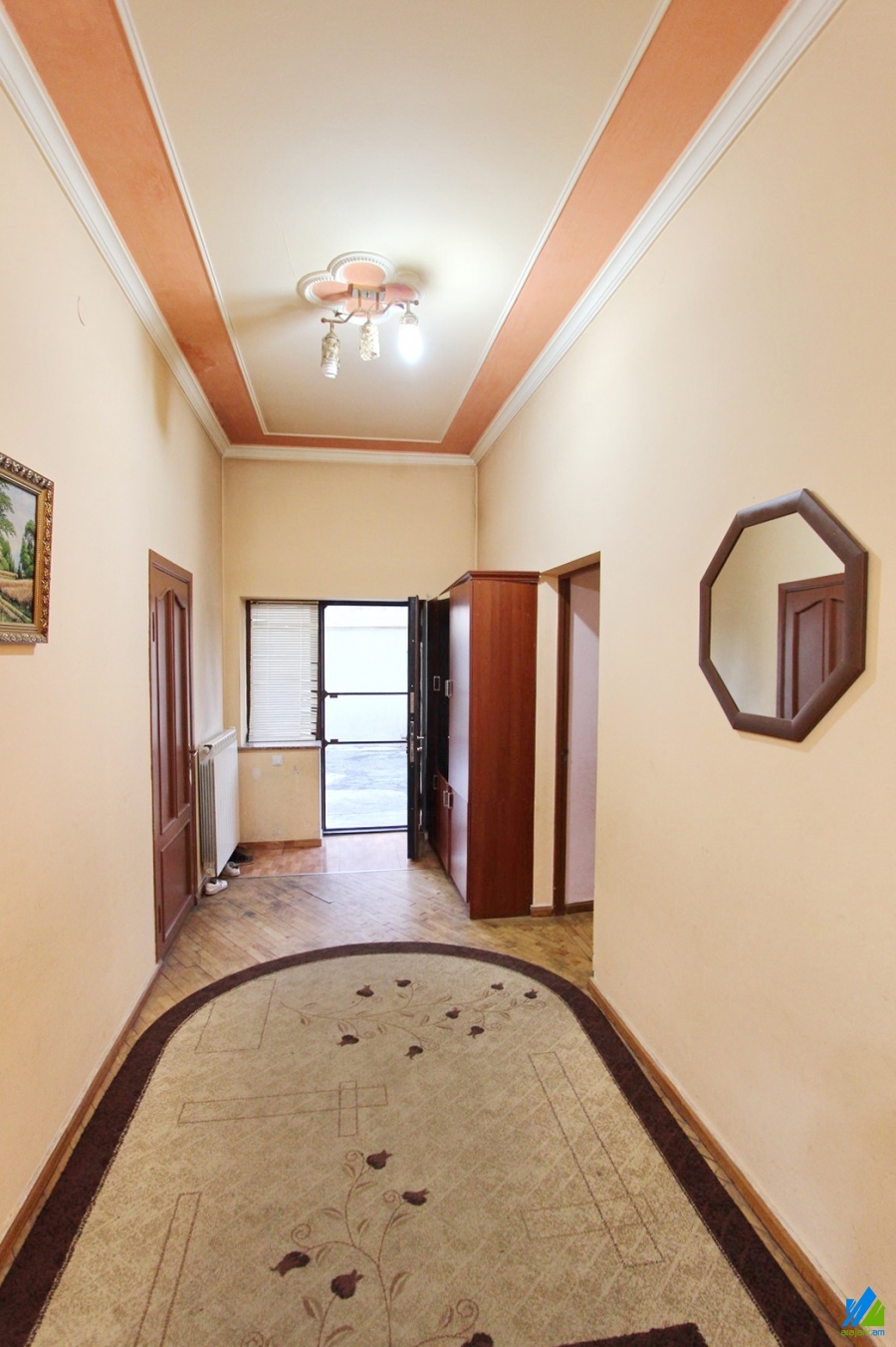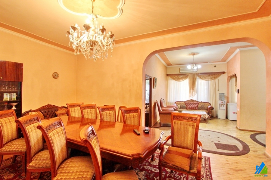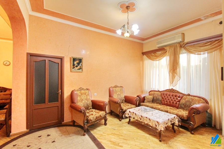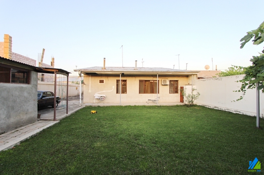 1-storey house for sale in Shengavit. The rooms’ quantity is 8, the house is newly renovated. The entrance door is iron-made, the windows are euro-based, the floor is covered by parquet and is tiled, the electric wires and pipes are newly changed. The apartment has 2,5m. stone fence, landscaped yard, garden, terrace, 40 sq.m. stone garage, 40 sq.m. cellar, heating system and is supplied with constant water and gas. The length of the forehead of the land is 12 meters.
