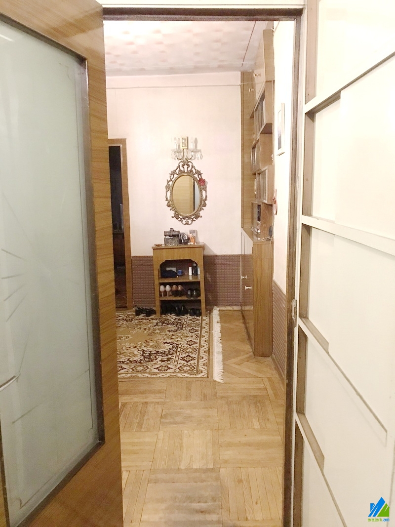 An apartment for sale in Orbeli Street. The rooms' quantity is 3 ( a hall and 2 bedrooms). The apartment is in the middle condition and is located on the top floor of the 10-storey panel building. The entrance door is iron-made, the windows are wooden, the floor is covered by parquet. The bathroom is separate, the electric wires are newly changed. It has a heating system and is supplied with constant water and gas.