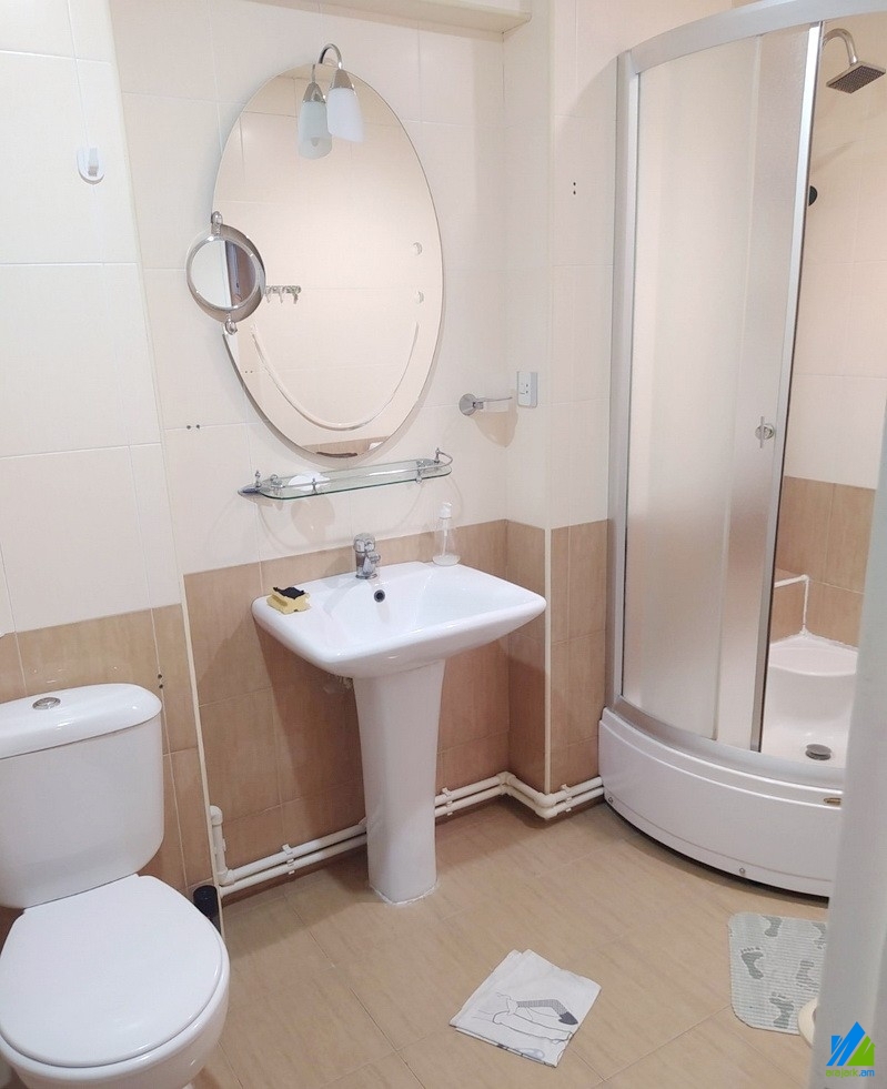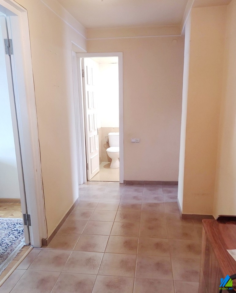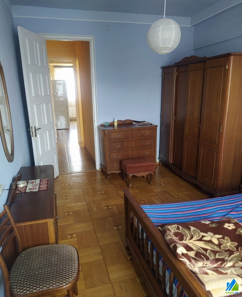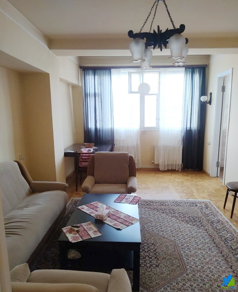 An apartment for rent in Khorenatsi street. The rooms' quantity is 2. The apartment is cosmetically renovated and is located on the top floor of the 10-storey panel building. The entrance door is iron-made, the windows are wooden, the floor is covered by parquet. The bathroom is combined and is tiled, the electric wires and pipes are newly changed. It has a heating system and is supplied with constant water and gas.