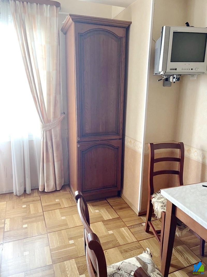 An apartment for rent in Mamikonyants Street. The rooms' quantity is 2 ( a hall and a bedroom). The apartment is cosmetically renovated and is located on the 8th floor of the 14-storey panel building. The entrance door is iron-made, the windows are wooden, the floor is covered by parquet. The bathroom is combined and tiled, the electric wires and pipes are newly changed. It is supplied with constant water and gas.