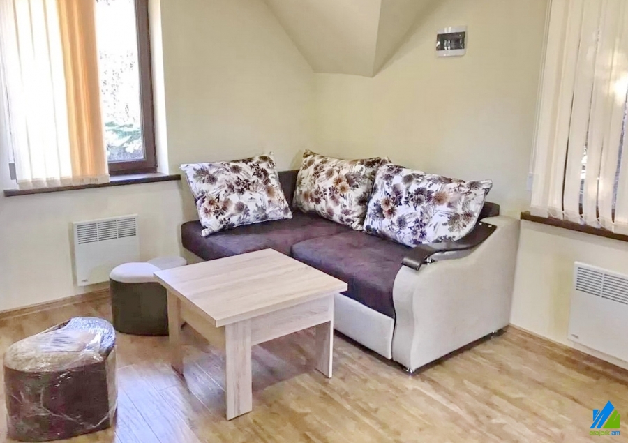A guesthouse for sale in Dilijan. The area is modern renovated. The entrance door is iron-made, the windows are euro-based, the floor is tiled. The bathroom is combined and tiled, the electric wires and pipes are newly changed. It has a cafeteria, balcony, laundry, heating system and is supplied with constant water and gas.