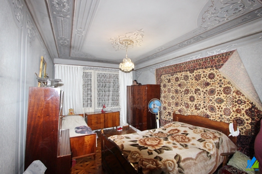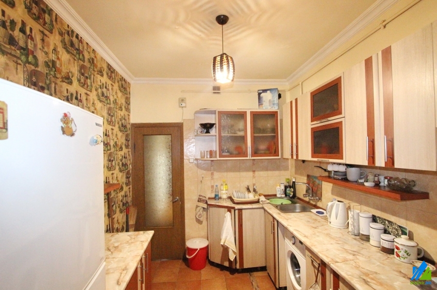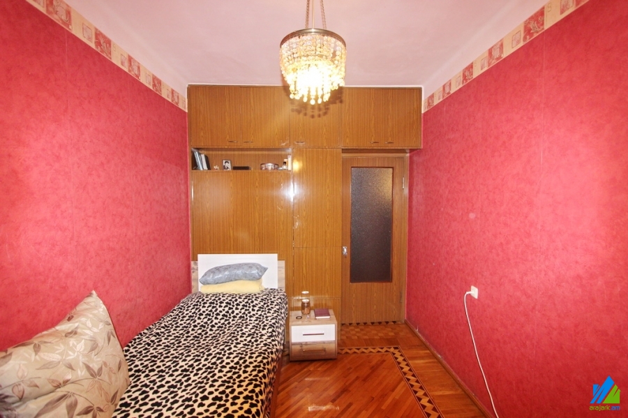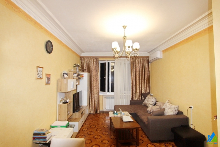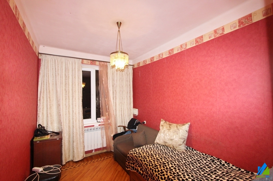 An apartment for sale in Mari street. The rooms' quantity is 3 ( a hall and 2 bedroom). The apartment is cosmetically renovated and is located on the 4th floor of the 5-storey panel building which is stationed on the 1st line. The entrance door is iron-made, the windows are euro-based, the floor is covered by parquet and is tiled. The bathroom is separated and is tiled, the electric wires and pipes are newly changed. It has built-in closets, a balcony, heating system and is supplied with constant water and gas. The apartment is being sold with some furniture.