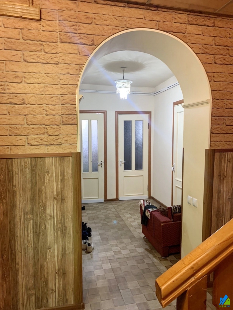 2-storey house for sale in Dzoraghbyur. The rooms' quantity is 7 (5 bedrooms and 2 hall). The house is capitally renovated and is stationed on the 1st line. The entrance door is iron-made, some windows are euro-based, the floor is covered by parquet and is tiled. The bathroom is former tiled, the electric wires and pipes are newly changed. It has a balcony, garage, yard, cellar and is supplied with constant water and gas. The house is being sold with some furniture and electrical devices.