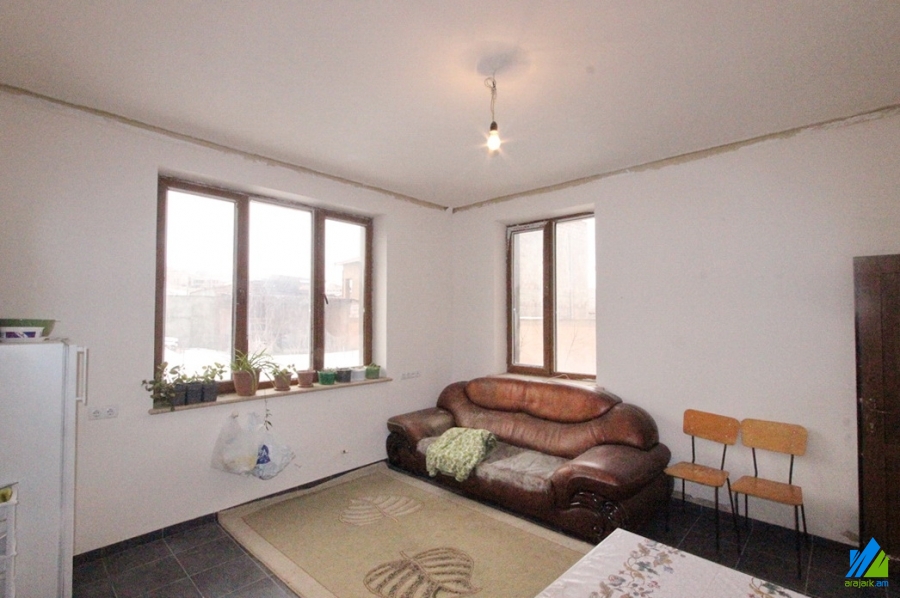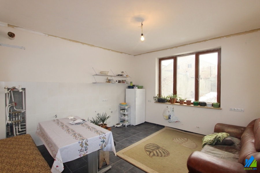 2-storey house for sale in Mher Mkrtchyan district. The rooms' quantity is 7. The house is in zero condition. The entrance door is iron-made, the windows are euro-based, the floor is covered by concrete. The bathroom (2) is combined and tiled. The house has a stone fence, garage, cellar, garden with fruitful trees and is supplied with constant water and gas.