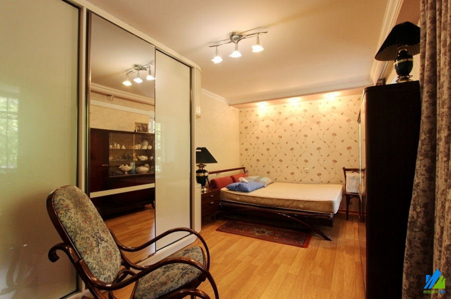 An apartment for rent in Myasnikyan street. The rooms’ quantity is 2 (a hall, a bedroom). The apartment is in middle condition and is located on the 2nd floor of 3-storey stone building. The entrance door is iron-made, the windows are euro-based, the floor is covered by laminate and is tiled. The bathroom is combined and tiled, the electric wires and pipes are newly changed. The apartment has a terrace, heating system and is supplied with constant water and gas. It is being rented with furniture and electronic devices.