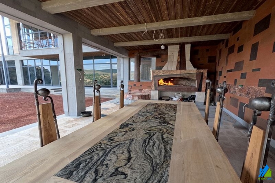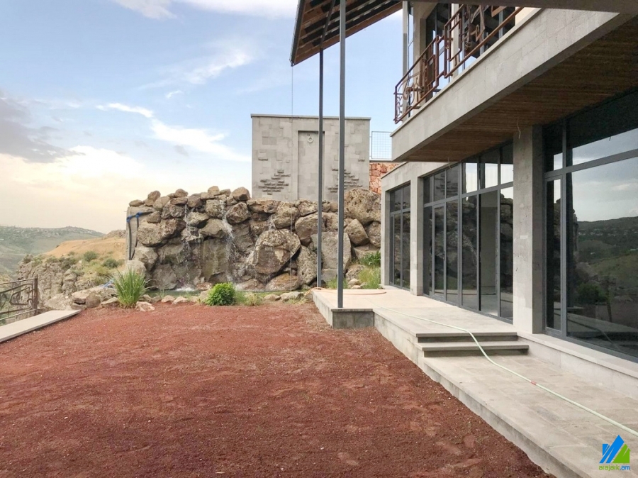 2-storey new house for sale in Argel Village. The rooms' quantity is 9 (a hall and 7 bedrooms). The house is newly renovated and is stationed in the 1st line. The entrance door is iron-made, the windows are euro-based, the floor is covered by granite and concrete. The bathroom is separated and modern tiled. The house has a stone fence, a pool, a fireplace, balconies, a playing room, heating system and is supplied with constant water and gas.