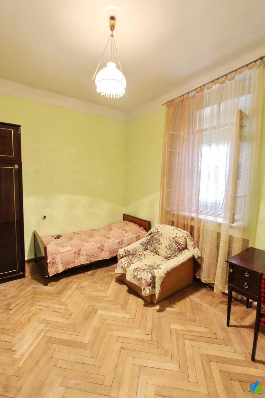 An apartment for sale in Qanaqer-Zeytun. The rooms' quantity is 3 room apartment remodeled into 4(a hall and 3 bedrooms). The apartment is in the state condition and is located on the top floor of the 2-storey stone building. The entrance door is wooden-made, the windows are wooden-based, the floor is covered by parquet. The bathroom is separated and former tiled. The apartment has a balcony, garage and is supplied with constant water and gas.