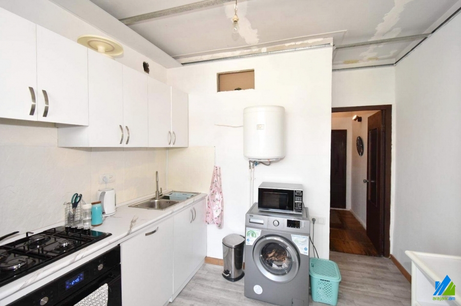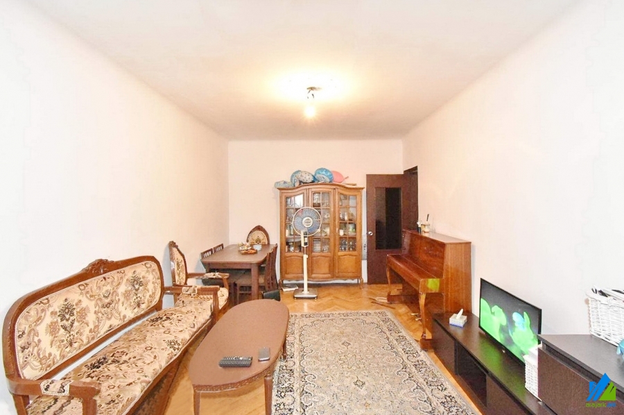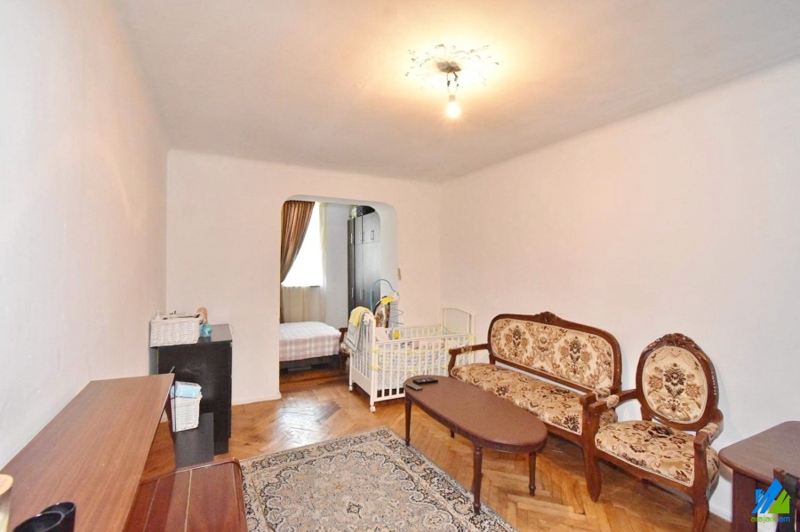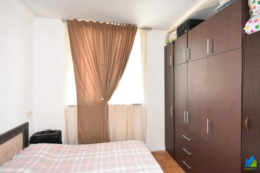An apartment for sale in Leningradyan Street. The apartment is cosmetically renovated and is located on the top floor of the 5-storey stone building. The entrance door is iron-made, the windows are wooden, the floor is covered with parquet. The bathroom is combined and tiled. It is supplied with constant water and gas.