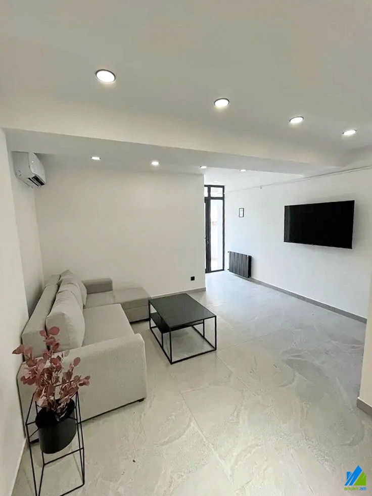 An apartment for sale in Sundukyan Street. The rooms' quantity is 2(a hall and a bedroom). The apartment is modern renovated and is located on the 4th floor of the 5-storey stone building. The entrance door is iron-made, the windows are euro-based, the floor is covered by solid granite. The bathroom is combined and modern tiled, the electric wires and pipes are newly chabnged. The apartment has a balcony, heating system and is supplied with constant water and gas.