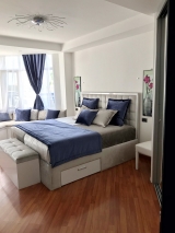 An apartment for rent in Al. Manukyan Street. The rooms' quantity is 4 ( a hall and 3 bedrooms ). The apartment is modern renovated and is located on the 3rd floor of the 5-storey monolith building. The entrance door is iron-made, the windows are euro-based, the floor is covered with laminate. The bathroom is combined and modern tiled. The apartment has an air-conditioner, heating system and is supplied with constant water and gas.