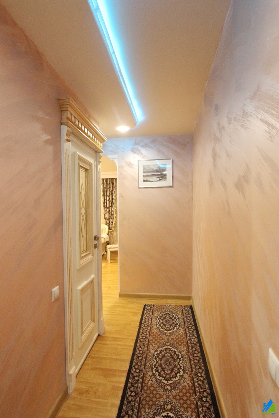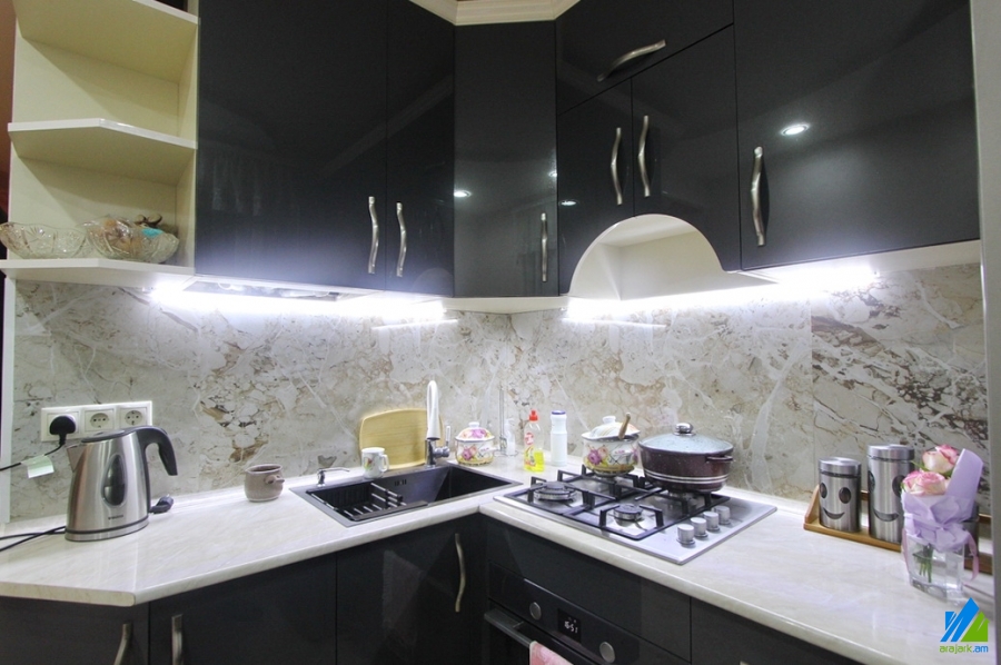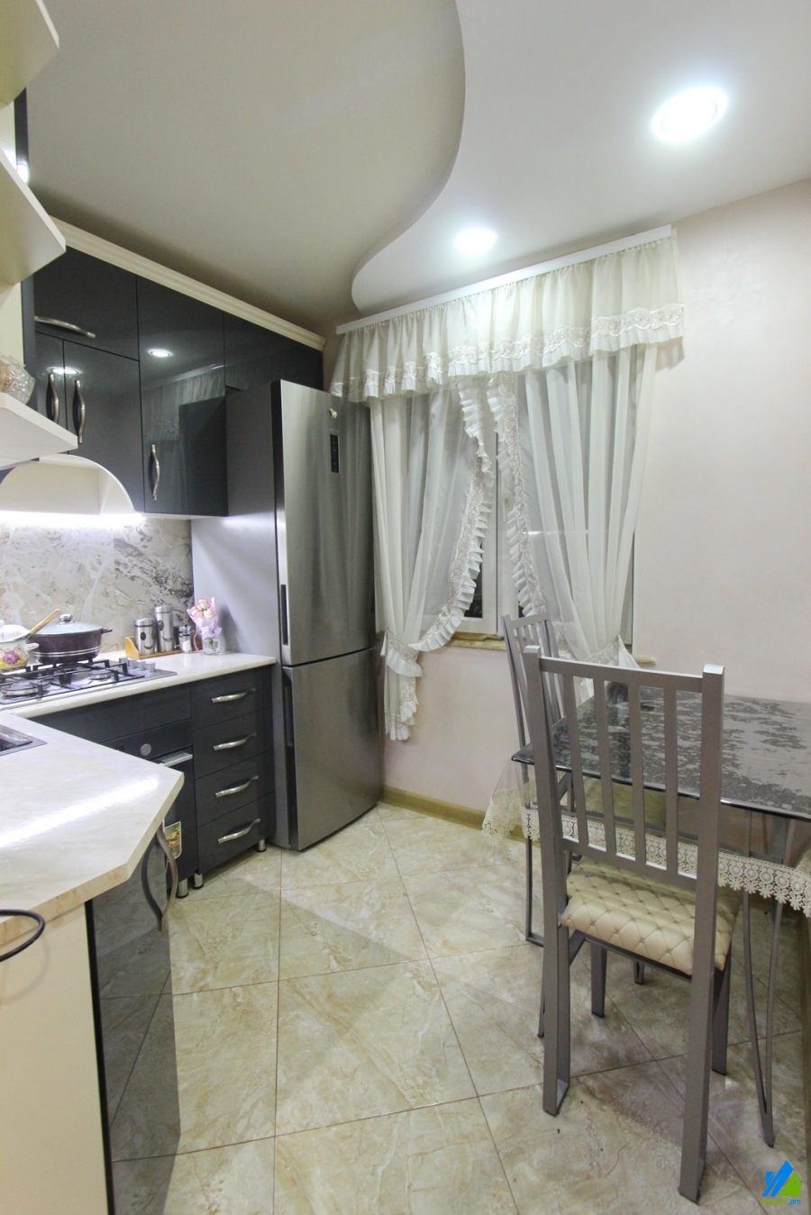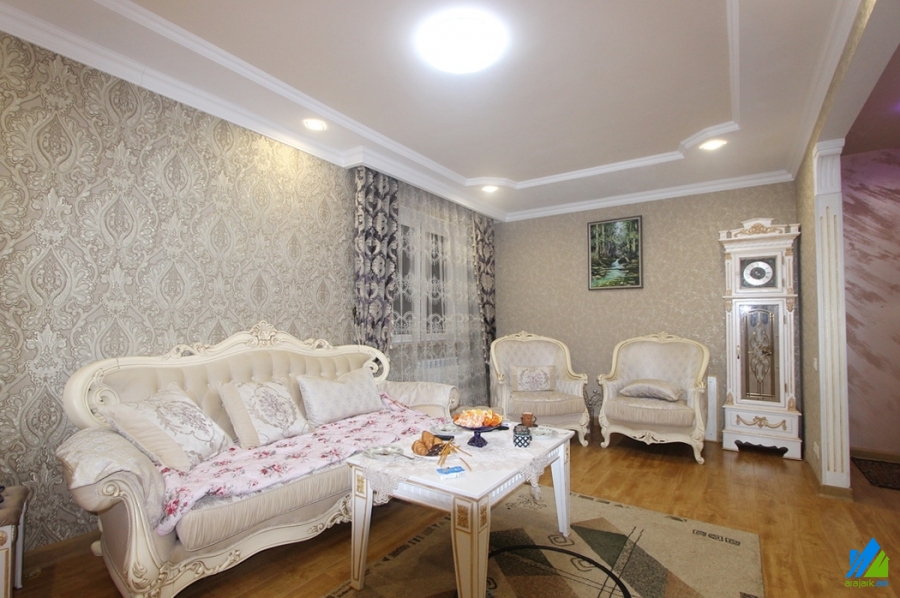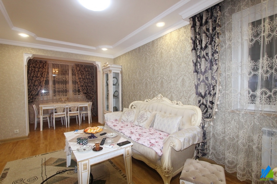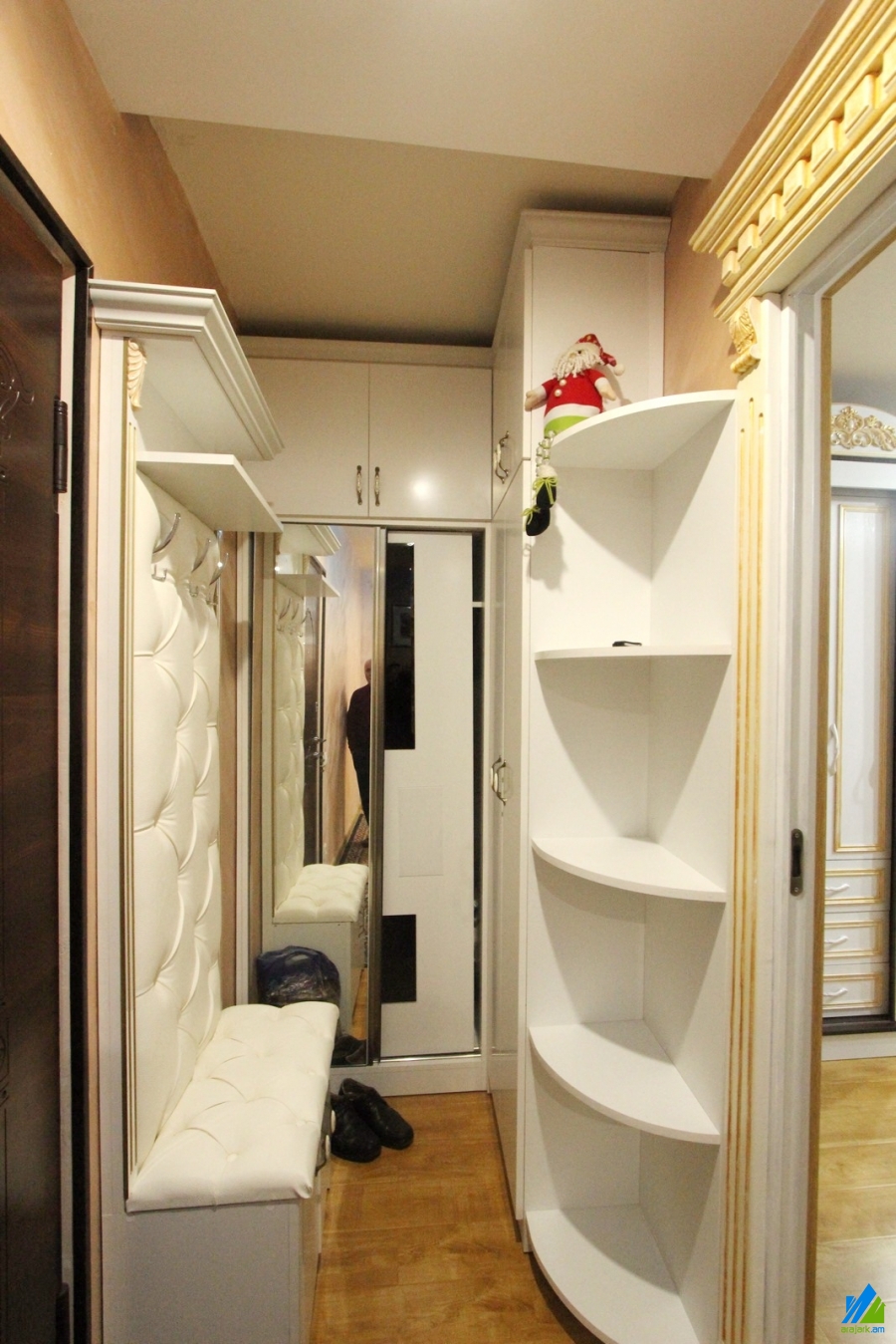An apartment for sale in Moldovakan street. The rooms' quantity is 2 (a hall and a bedroom) The apartment is modern renovated and is located on the 4th floor of the 5-storey building. The entrance door is iron-made, the windows are euro-based, the floor is covered by laminate. The bathroom is combined and modern tiled, the electric wires and pipes are newly changed. It has a balcony, heating system and is supplied with constant water and gas. The apartment is being sold with some furniture.