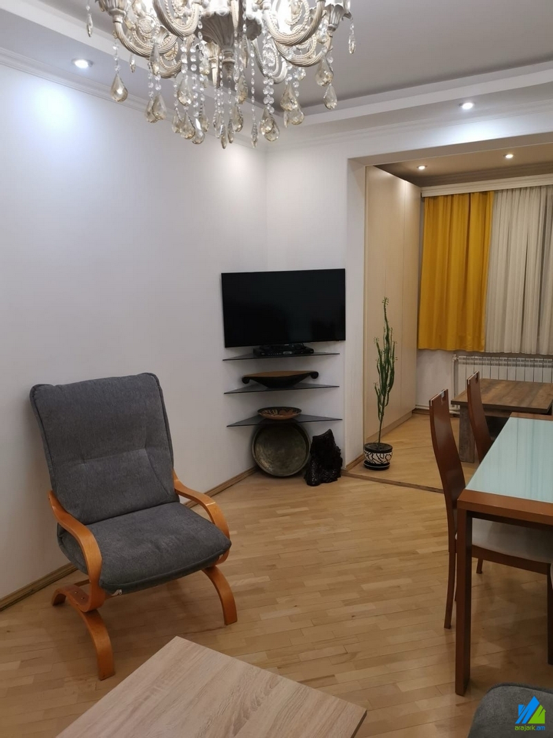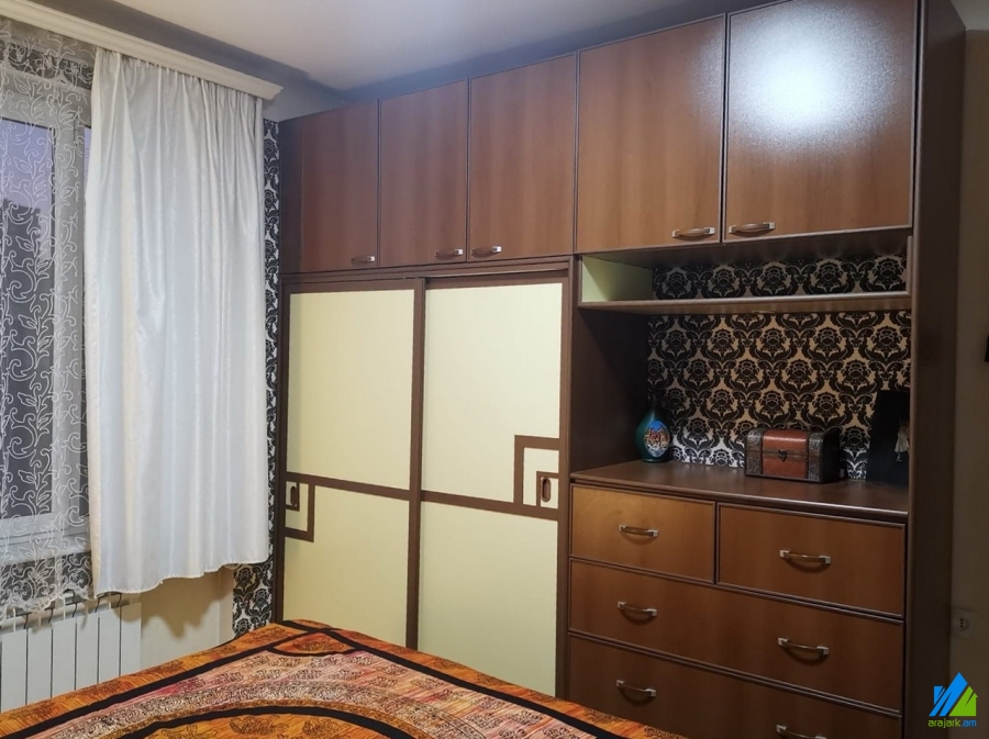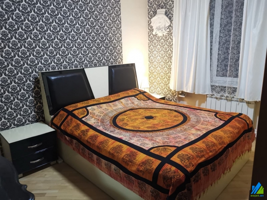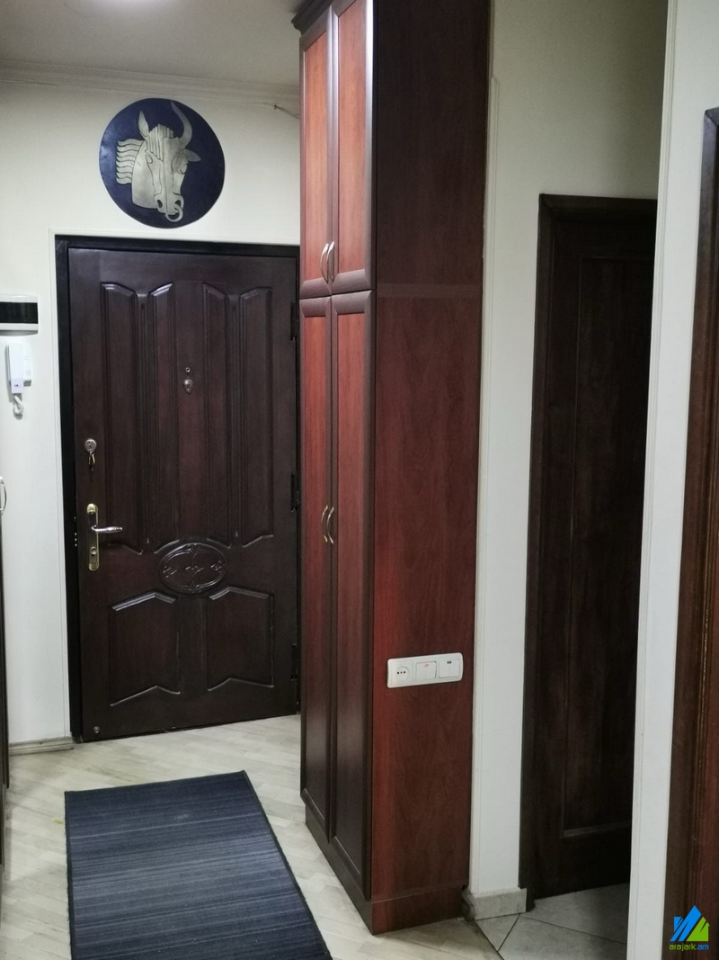 An apartment for sale in Galshoyan Street. The rooms' quantity is 3 ( a hall and 2 bedrooms ). The apartment is newly renovated and is located on the 3rd floor of the 5-storey panel building. The entrance door is iron-made, the windows are euro-based, the floor is covered with parquet. The bathroom is separate and tiled, the electric wires and pipes are newly changed. The apartment has a heating system and is supplied with constant water and gas.