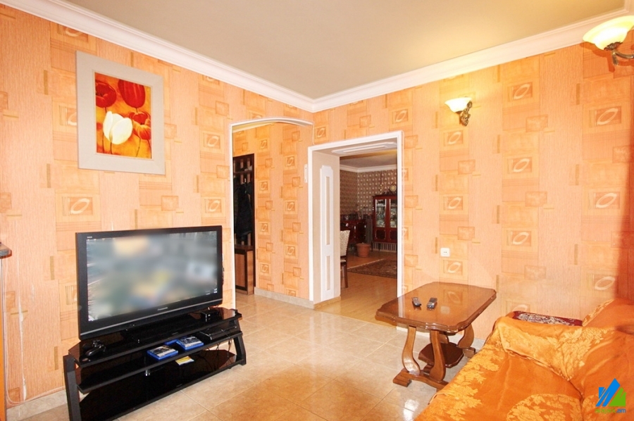 An apartment for sale in Nansen street. The rooms' quantity is 5 (2 halls and 3 bedrooms) The apartment is newly renovated and is located on the 2nd floor of the 5-storey stone building. The entrance door is iron-made, the windows are euro-based, the floor is covered by parquet, laminate and is tiled. The bathroom is combined and tiled, the electric wires and pipes are newly changed. The apartment has a balcony, heating system and is supplied with constant water and gas. It is being sold with furniture and electronic devices.